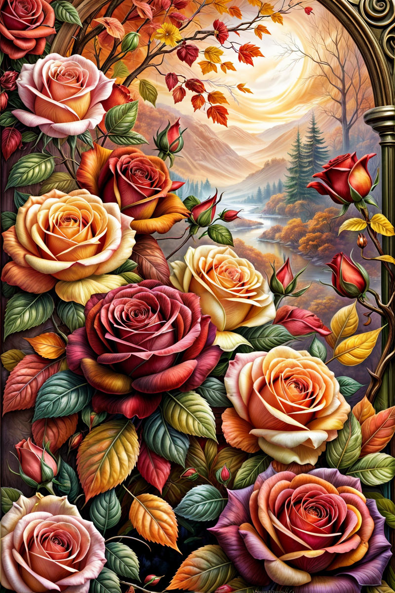 Друзья, сегодня одарю вас букетами из чайных и черных роз, которые я сгенерировала по двум разным промтам. Промт 1: Высочайшее качество изображения, ультрареалистичная художественная фотография, наклейка высокого качества от Джоди Бергсма, Меган Дункансон, Мелани Делон, осенний шедевр, красивая осенняя композиция, розы разных цветов, яркие осенние краски, насыщенные глубокие цвета, гармоничный композиционный баланс, в кадре, цифровое искусство, объемное освещение, 16k, Dolby Vision, гармония, элегантность, замысловатые детали, естественные текстуры и детали, высокая детализация, ультрадетализация, острый фокус, приятная композиция Промт 2: Акварель совершенно темная. Черная роза. Никакого фона. Завораживающее изображение, запечатленное с мельчайшими деталями на холсте, вызывает чувство чуда и очарования, демонстрируя изысканную красоту этого уникального цветка. 3D, волшебная, сказочная, шедевральная картина, высокодетализированная, пленительная, чарующая, рассеянный свет, идеальная