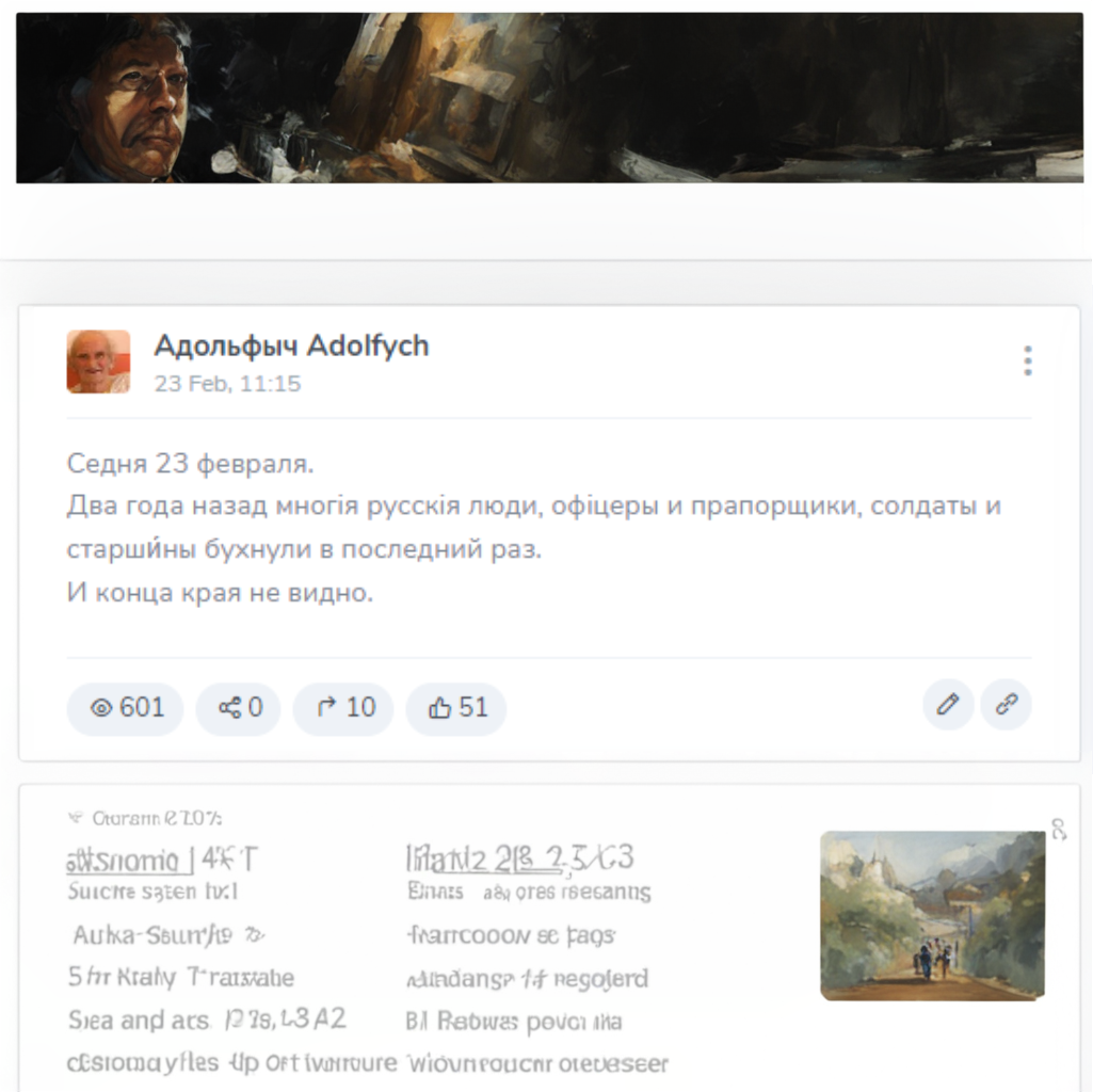 Владимир Шамрай, он же блогер Адольфыч, он же писатель «Владимир Нестеренко» впал в очередный истеричный транс по поводу 23 февраля и второй годовщины начала СВО – пишет теперь про необучаемость русского народа и про то, что «два года назад» бухнуло в последний раз много русских мужичков. Про количество таких украинцев он почему-то умалчивает.