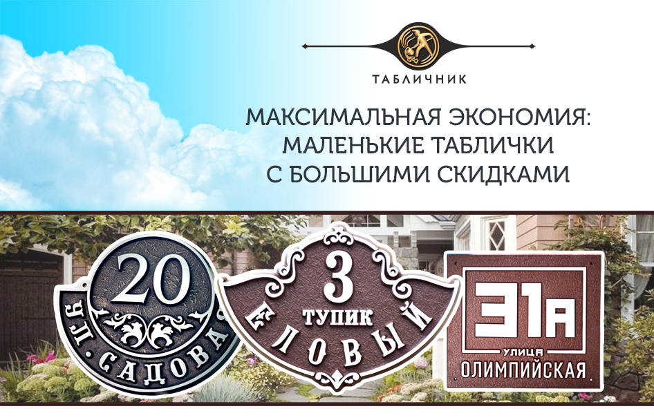 Хотите выделить свой дом на фоне скучных одинаковых фасадов? Для этого не нужно затевать масштабное преобразование: достаточно одного удачно подобранного штриха. Например, им может стать литая адресная табличка ручной работы. И прямо сейчас её можно заказать со скидкой 20%! Оригинальные авторские дизайны Акция действует на три маленькие алюминиевые таблички. Куда такой годится маленький? Подойдёт ли вам маленькая табличка? Справится ли она со своей задачей указателя? Да, если вы можете разместить её поближе к дороге. Мы рекомендуем выбирать маленькие таблички для установки на забор или столбик ворот. При таком расположении размер не важен, поскольку люди могут читать ваш адрес с близкого расстояния. Экономия существенная, а минусов никаких. Другое дело, если вы прицельно ищете табличку для фасада. В таком случае стоит присмотреться к среднему или большому размеру. Маленький может оказаться непрактичным, особенно если дом находится в глубине участка. Изготовление адресных табличек из ме