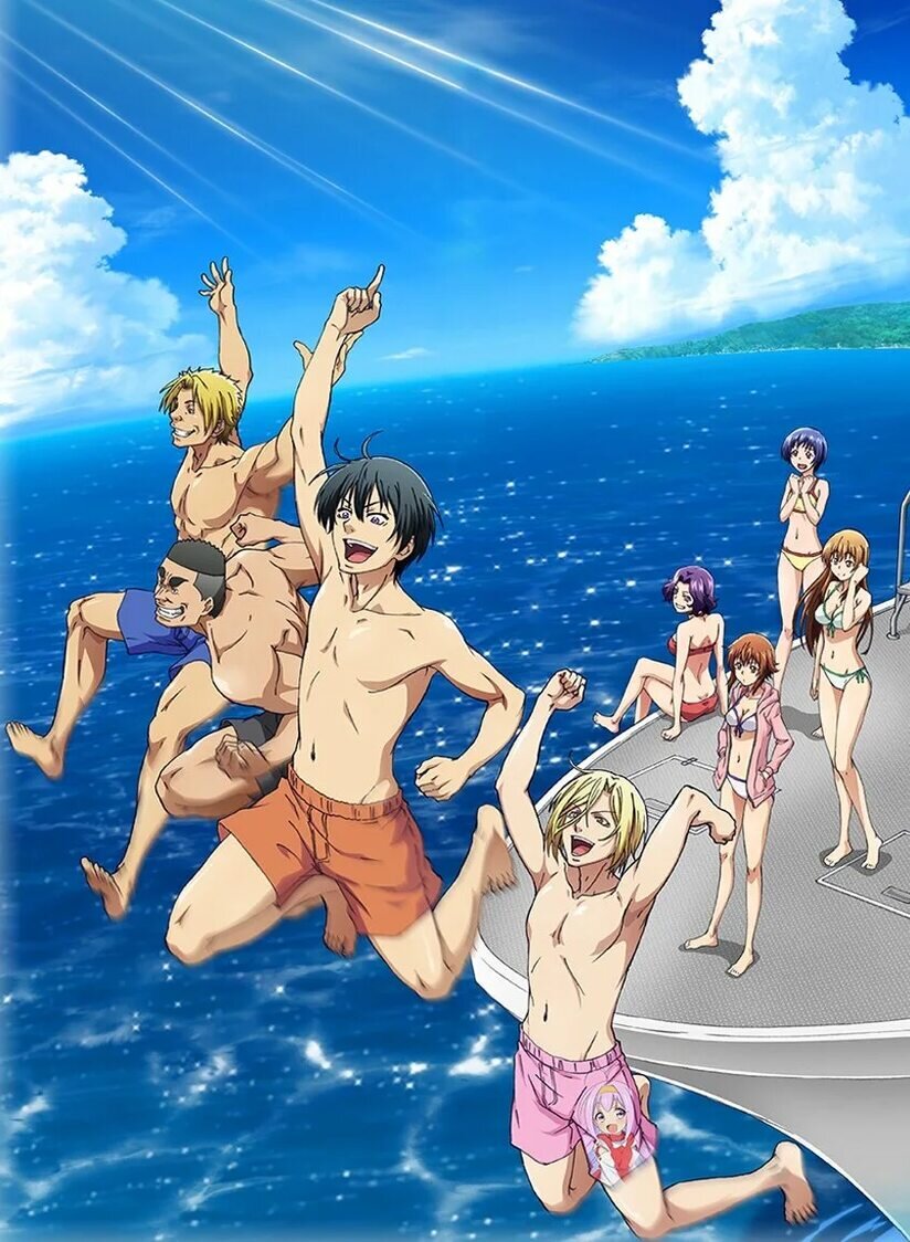 Grand Blue. Жанры: комедия, повседневность. Сюжет. Главный герой поступает в университет и снимает комнату на берегу моря, где по совместительству находится магазин для дайвинга. Это хобби ему совершенно не интересно, но встретив новых друзей, он с головой окунется в беззаботную студенческую жизнь и проникнется морем. Плюсы. Хорошая рисовка. Много юмора. Атмосфера лета передана отлично. Минусы. Практически ноль смысловой нагрузки, да она скорее всего и не нужна. Итого. Необъятный океан-это отличная короткая комедия, которая погружает вас в беззаботные студенческие годы, когда единственная задача, выжить после очередной попойки. Здесь нет определенной сюжетной линии, глубокого подтекста или философских размышлений, но есть атмосфера ярких летних дней, море алкоголя и самых разных, нелепых, но смешных ситуаций к которым он приводит. Аниме смотрится легко, может не смех, но улыбка, точно не сходит с лица, а что еще нужно от комедии. В общем, если хотите расслабиться и повеселится, то это