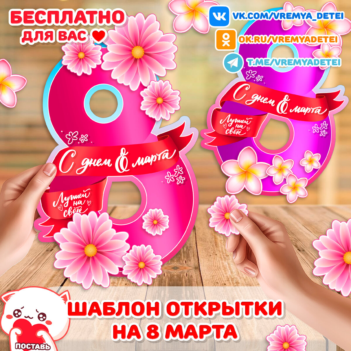 Шаблоны Открытки на 8 марта 💖