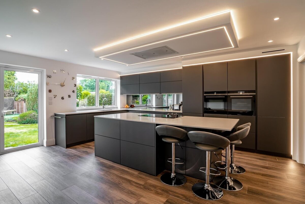 Все более модным решением становится гостиная, совмещенная с кухней - неудивительно, ведь это очень практично и удобно. В больших домах очень важно иметь общее пространство, где может находиться вся семья. Так называемый "остров", отделяющий кухню от гостиной, чрезвычайно популярен. Самое большое преимущество этого решения заключается в том, что человек, готовящий еду, может одновременно проводить время с остальными членами семьи. Конечно, это также имеет свои недостатки, о которых мы поговорим позже. Гостиная с кухней Есть много возможностей для кухни, открытой для гостиной. Очень популярной процедурой является выбор кухонных шкафов, в которых можно разместить всю необходимую бытовую технику. Такая кухня "спрячется" в пространстве и не внесет в него слишком много хаоса. Шкафы могут быть того же цвета, что и мебель на кухне, как и пол. Благодаря такому расположению, общий вид будет довольно минималистичным. Второй вариант - это кухня "старого стиля", которая полностью открыта. Его преи