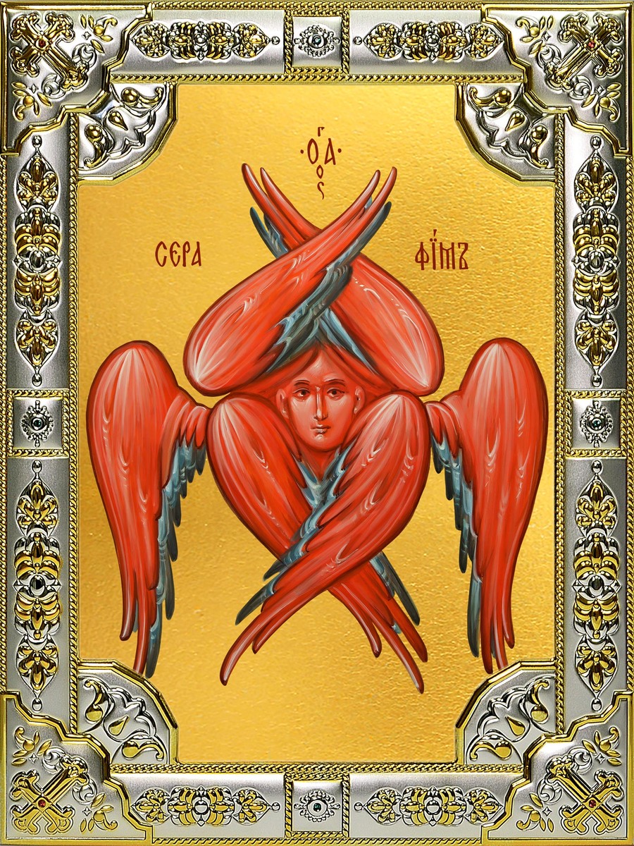 Описываются и изображаются с 6-ю крыльями, часто красного (огненного) цвета. Потому, что только Творец и высшие Ангелы – Серафы владеют Священным Божественным Огнём!