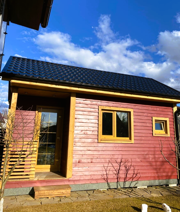 В сегодняшней статье я предлагаю вашему вниманию обзор на компактный и привлекательный дом площадью всего 18 квадратных метров. Несмотря на свои скромные размеры, этот дом отличается стилем и комфортом. Он подходит для круглогодичного проживания или может быть использован в качестве летнего домика. Идеальное жилье для одного человека. Как говорится, если есть желание, то все остальное сбудется. Этот домик представляет собой студию небольшого размера. Снаружи он выглядит очень уютным благодаря обустроенному внутреннему дворику. Во дворе имеется своя небольшая терраса, а также растения, дорожки и даже деревья, которые не попали в кадр. Этот дом предназначен для зимнего использования и находится рядом с основным домом, в котором проживает семья. Маленький домик используется для приема гостей. В этом доме отсутствует прихожая, и вход ведет прямо в объединенное пространство кухни, комнаты и спальни. Однако, несмотря на простоту, дом оформлен со вкусом, и это заметно в деталях. В этом небо