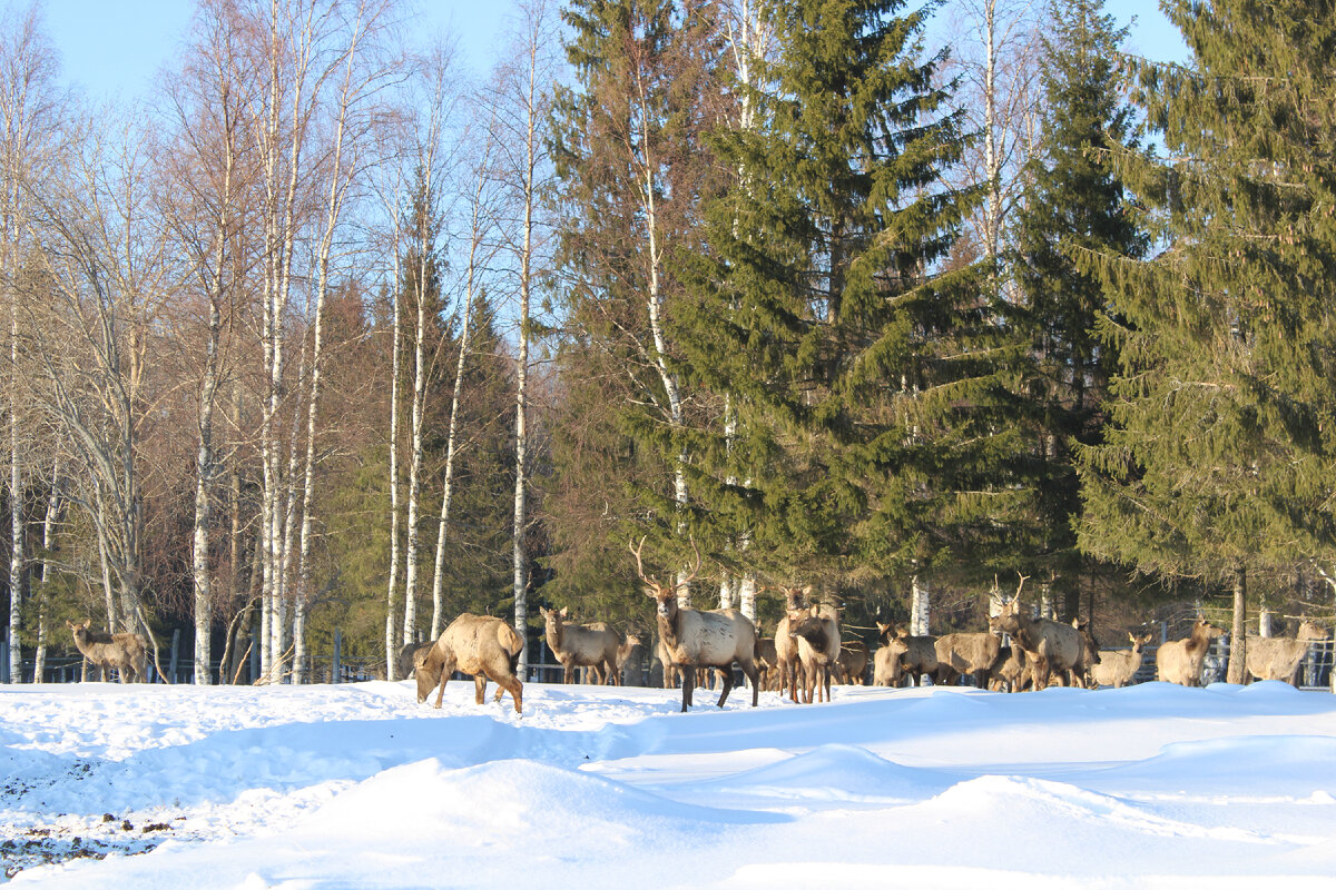 А потом видишь то, ради чего сюда и приехал- олени. И они не в клетке, не за оградой, а спокойно стоят себе и жуют сено.