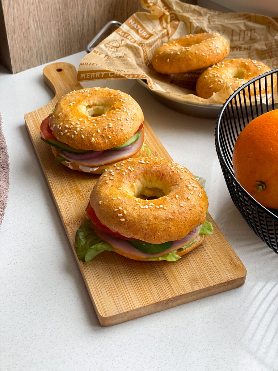 Безумно вкусный завтрак без вреда для фигуры 🥯 Ингредиенты на 4 шт: К творогу добавить 1 яйцо + 1 белок (желток оставить для смазывания), рисовую муку, разрыхлитель, соль, перец. Замесить тесто. Разделить тесто на 4 части, из каждой сформировать колечко. Смазать желтком, посыпать кунжутом и отправить в духовку на 20-30 минут при 180 градусах. Готовым бейглам дать немного остыть, разрезать вдоль и выложить любую начинку по вкусу. Варианты: 🥯 курица/мясо + овощи 🥯 красная рыбка + творожный сыр + зелень 🥯 яйцо + авокадо Приятного аппетита! ❤️ Видеорецепт посмотрите обязательно!)