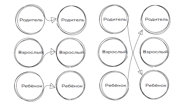 Одним из важных навыков, который может дать психология, является понимание эго-состояний каждого партнера. Это необходимо для того чтобы научиться понимать друг друга в отношениях, нормальной коммуникации в семье, понимания и взаимодействия партнеров. Эго-состояния в транзактном анализе Внутренний Родитель - родительское эго-состояние. В плюсе проявляет себя в форме поддержки, заботы, присутствия, внимания, любви. В минусе будет преобладать критика, обесценивание, недовольство, равнодушие, насилие и т.д. Взрослый - эго-состояние, которое отвечает за рациональное, зрелое, логическое, причинно-следственное мышление. Состояние "здесь и сейчас", объективная и трезвая оценка ситуации и действие в соответствии с выбором. Внутренний Ребенок - детское эго-состояние. В плюсе это будет радостный, довольный, любопытный, открытый, активный ребенок. В минусе - закрытый, недоверчивый, обиженный, отстраненный, озлобленный и т.д. Транзакции в паре Коммуникация в транзактном анализе (называются "транза