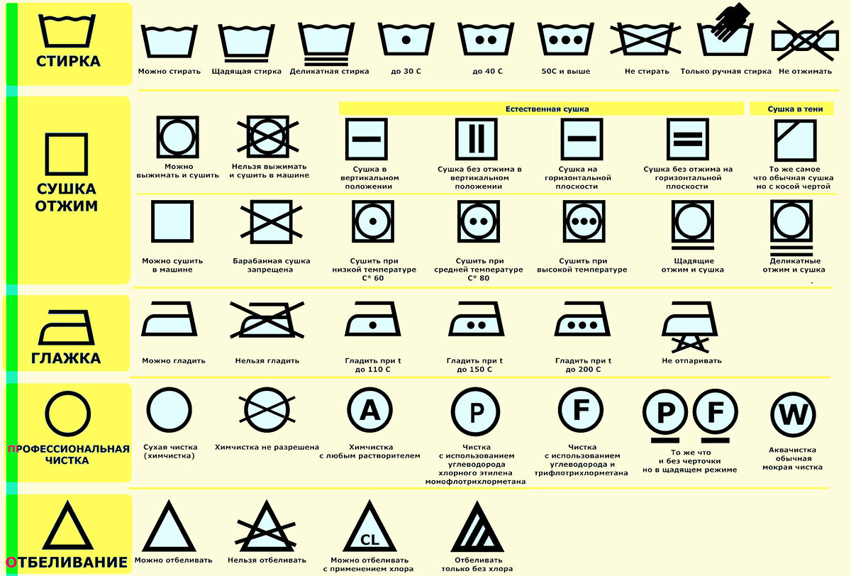 Значки на ярлыках одежды предоставляют информацию о том, как следует ухаживать за изделием, из каких материалов оно изготовлено, а также предупреждают о возможных рисках. Общепринятые символы могут включать в себя следующее: Эти значки обеспечивают вас информацией о правилах ухода за вашей одеждой, что помогает увеличить ее срок службы и сохранить первоначальный вид.