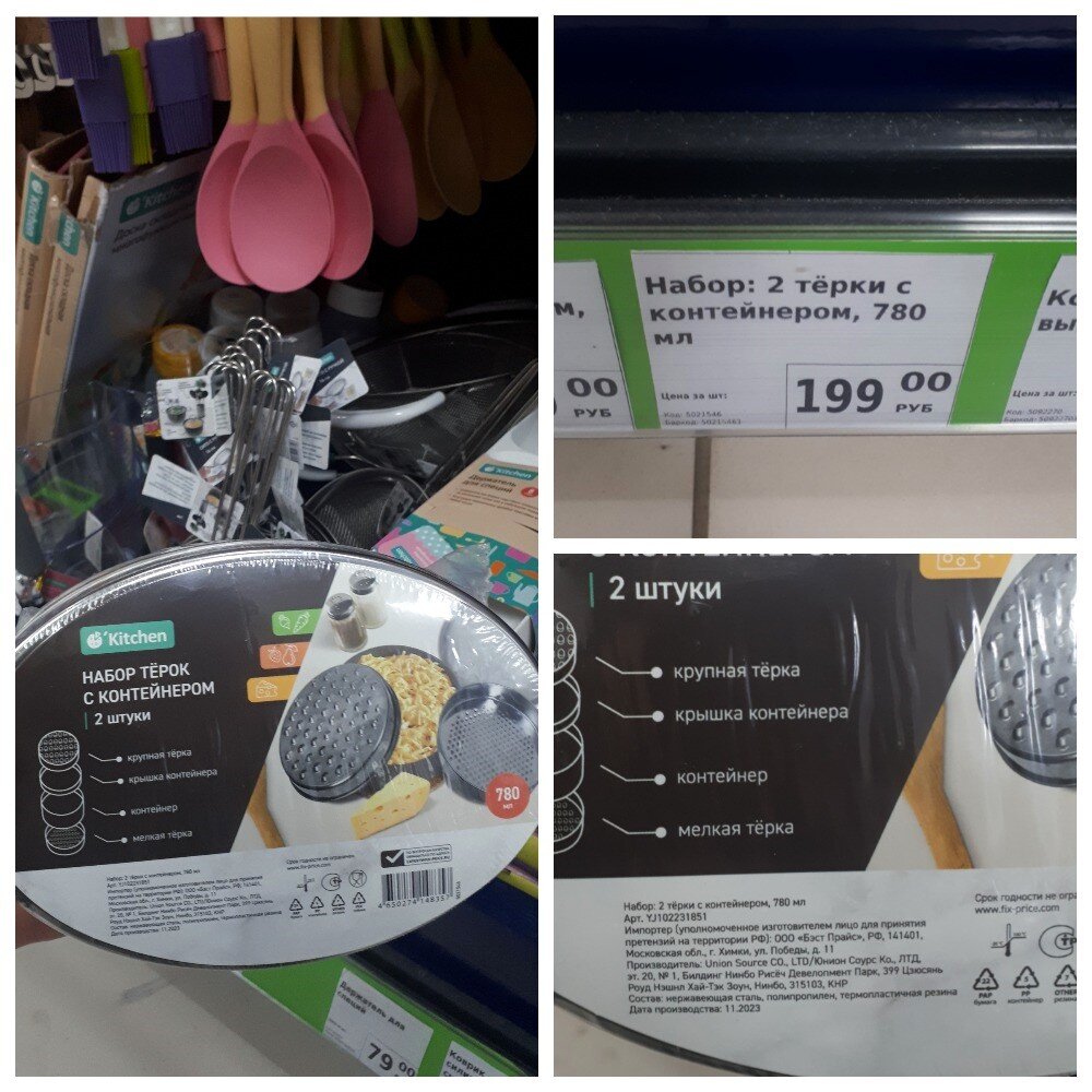 Всем привет. Меня зовут Наталья. Я очень рада видеть вас на своём канале. Сегодня мы с вами прогуляемся по магазину Фикс Прайс, который находится по адресу: город Йошкар-Ола, улица Воинов Интернационалистов, дом 25в. В этот раз я вам покажу новую посуду и кухонную утварь, которые появились в магазине. Так что устраивайтесь поудобнее. Желаю всем приятного времяпровождения. Набор тёрок с контейнером стоимостью 199 рублей. В наборе 2 штуки: крупная тёрка и мелкая. Контейнер у них один на двоих. Он оснащён крышкой. Объём контейнера 780 мл. Состав: нержавеющая сталь, полипропилен, термопластичная резина. Страна изготовления Китай. В магазине 3 варианта. Набор мерных кувшинов стоимостью 149 рублей. В наборе 3 кувшина разного объёма: 0,25 л, 0,5 л и 0,9 л. Состав: полипропилен. Страна изготовления Китай. Кувшины оснащены эргономичной ручкой и удобным носиком. На них нанесены 2 мерные шкалы: для сыпучих продуктов, измеряемых в граммах, и для жидкостей - в миллилитрах. Набор форм для выпечки ст