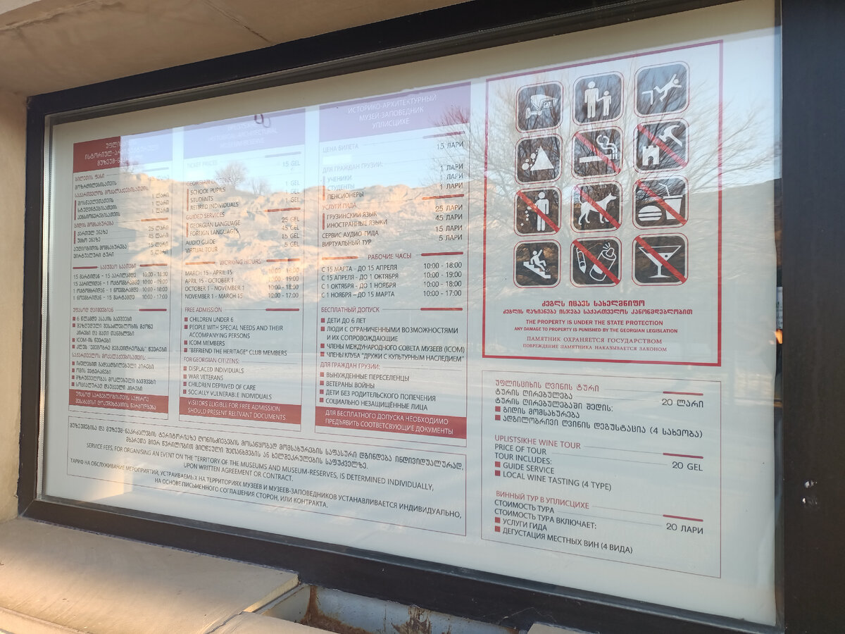 Мы взяли экскурсию на русском языке за 45 ₾ (1560 ₽), плюс билет на каждого с дегустацией вина стоил 20 ₾ (700 ₽).