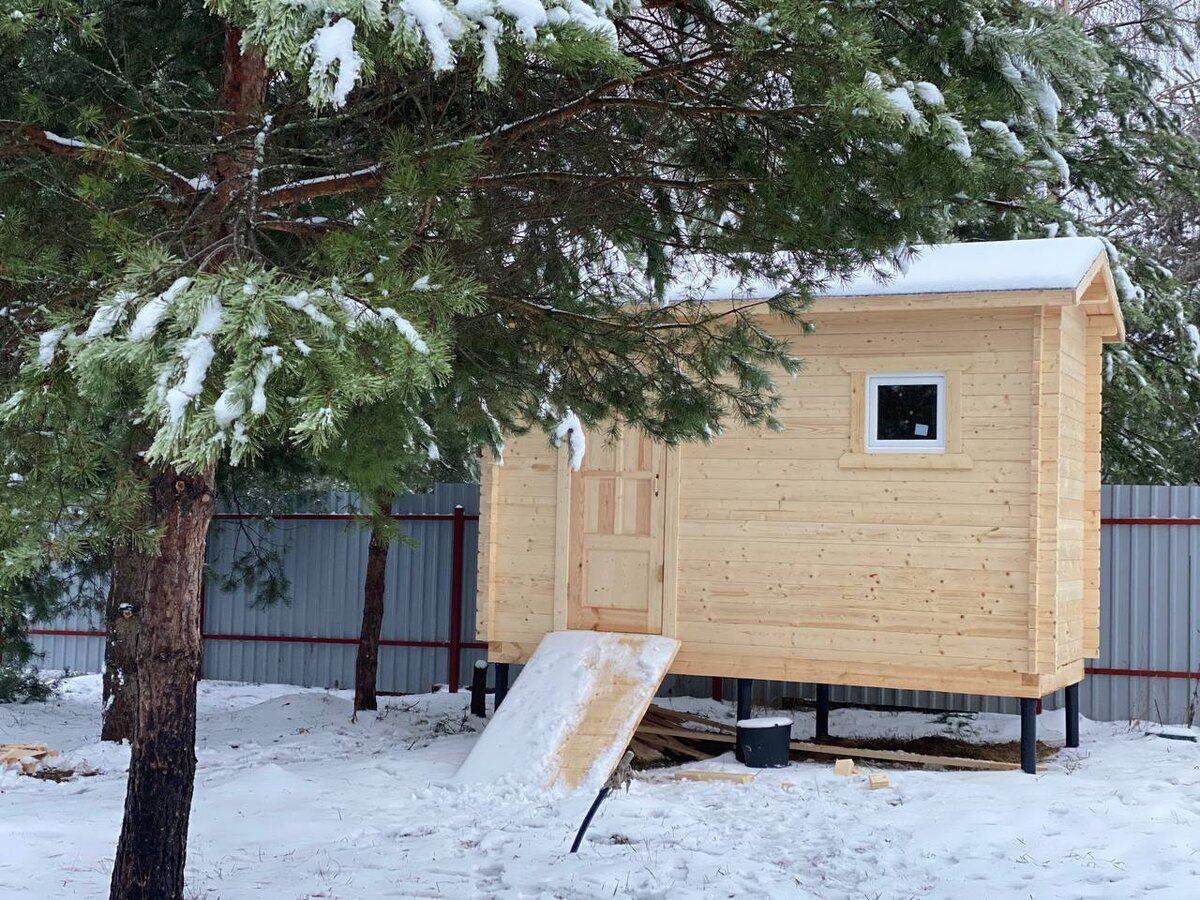 Чтобы #бытовка или #хозблок не отличалась от садового домика, заказали в той же компании. И опять я промахнулась 🤦♀️. Решила, что стены тонкие и чтоб постройка не стояла в сугробе, сделала высокие сваи. Теперь пандус как горка, и попробуй, заберись 😂. Весной будем на домкратах поднимать бытовку и спиливать сваи ниже. Тут будут #рододендроны ✅