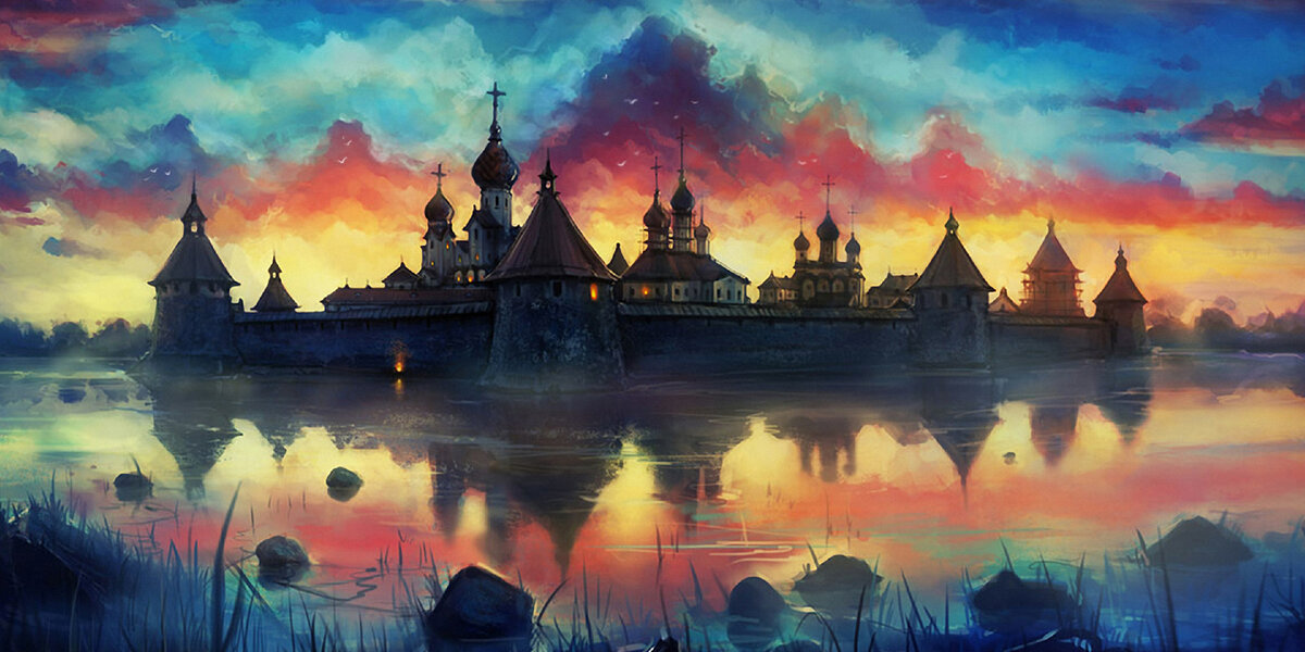 В ветлужских лесах есть озеро. Расположено оно в лесной чаще. Голубые воды озера лежат неподвижно и днем и ночью. Лишь изредка легкая зыбь пробегает по озеру. Бывают дни, когда до тихих берегов озера доносится протяжное пение и слышится далекий колокольный звон. Давным-давно, еще до пришествия татар, на месте озера стоял славный град Китеж. В центре города возвышались шесть глав церквей. Придя на Русь и завоевав многие земли наши, Батый услышал про славный Китеж-град и устремился к нему с ордами своими... Татары грозовой тучей обложили город и хотели взять его силой, но когда они прорвались к его стенам, то изумились. Жители города не только не построили никаких укреплений, но даже не собирались защищаться. До татар доносился лишь колокольный звон церквей. Жители молились о спасении, так как от татар нечего было ждать чего-либо доброго. И как только татары ринулись к городу, из-под земли вдруг забили многоводные источники, и татары в страхе отступили. А вода все бежала и бежала... Когд