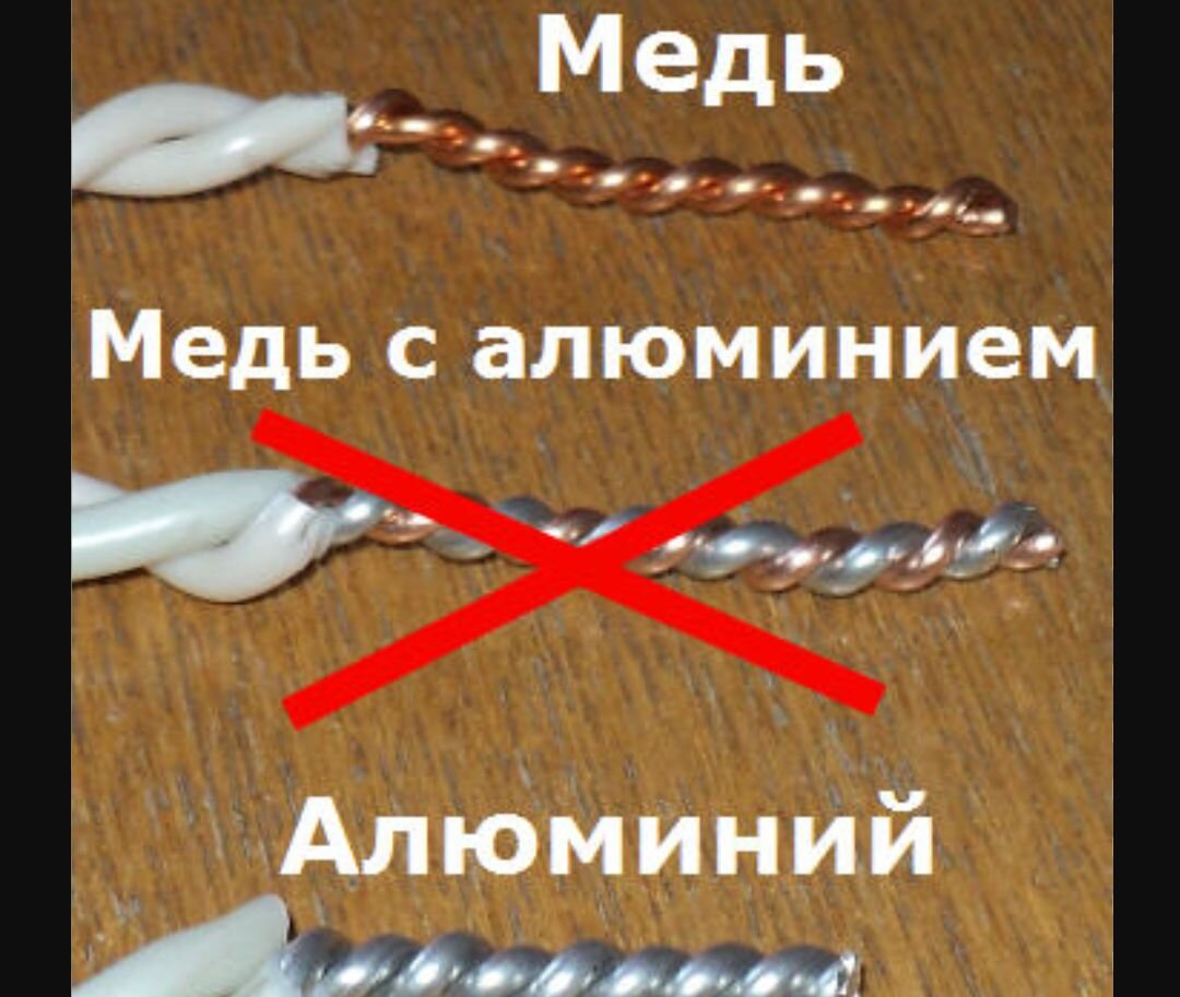 Потому что на алюмини сопротивление больше чем мед.Вот к чему приводит сайдинения мед и алюмини. У всех есть дома Аристон тифал и тагдали .Если фаза или нол провид згарейд и на корпус упадёт тагда ток на землю уйдет.