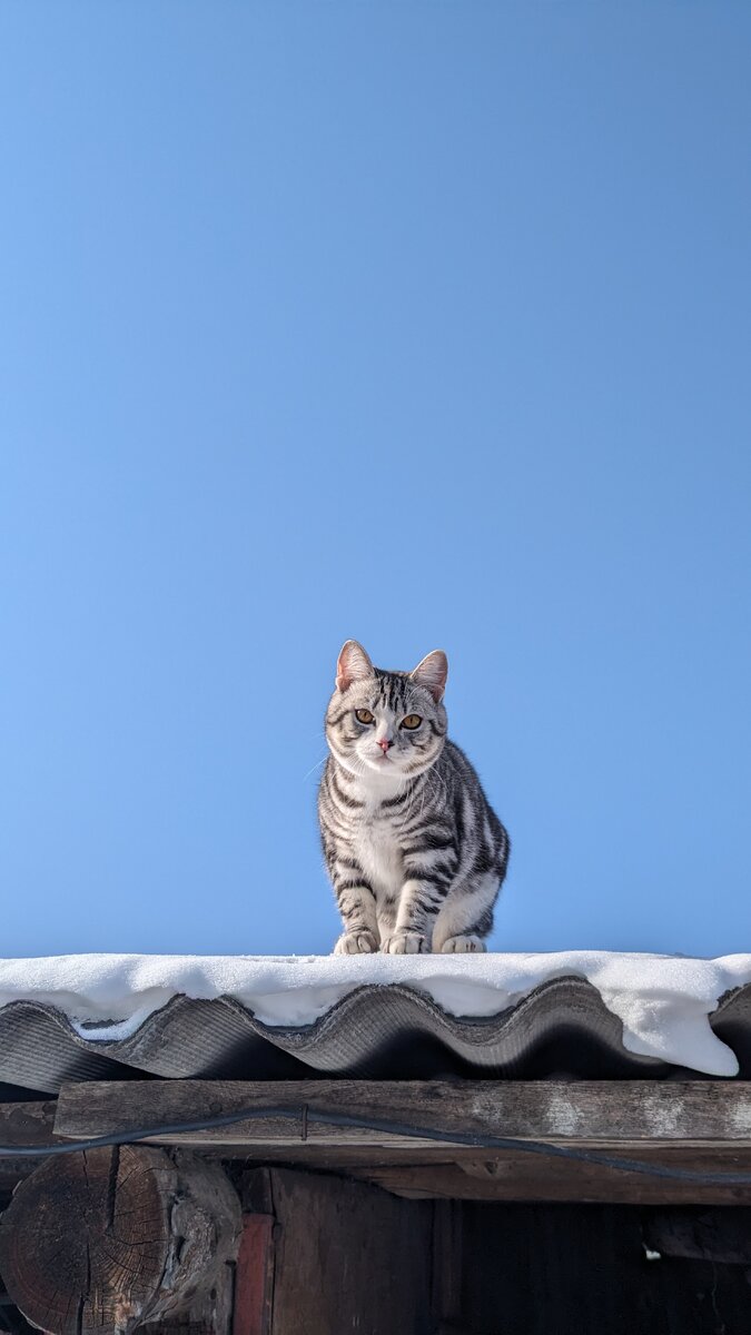 Свежий воздух, морозец. Деревенские котики на крышах. Ходили за птицами в ближайший перелесок. Мало их, может быть, из-за холода или место такое. Разглядели большого пёстрого дятла, ворон, сорок, домовых воробьев, синиц. Услышали пухляка. Потом греться у печки. А по дороге в деревню и обратно, конечно, вязать.