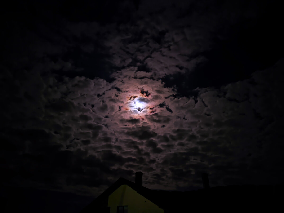 Ну вот, ждали-ждали и она пришла, весна, красивая такая, мягкая, свежая, приятная и теплая. Теперь можно каждый вечер и ночь любоваться небом, утром встаю и сразу бегу на террасу, небо разглядывать. Пока погода солнечная, надо успеть все весенние пейзажи поймать, тут уж спасибо Тигре и Рыжей, да и Дымке спасибо. Вначале был вечер, поздний. Вышли мы на улицу, а там полнолуние, не такое конечно близкое, как хотелось бы, чтобы лунные кратеры рассмотреть, но зато на фоне рваных облаков великолепно просвечивает. Загадочно. Ночью уснул, так хорошо спалось, но недолго, морды разбудили, тыкались, колотили, улюлюкали и даже разок гавкнули, пришлось вставать, кепка уже не помогала. Вывел, Дымка заскочила, покормил, этих загнал, улеглись, заснули. Пришла Дымка, разбудила, взгромоздилась на меня, заснули. Проснулся под утро, уже расцветало, эти все улюлюкали. Дымку переложил на диван, заскочил на террасу, глянул в небо, обалдел, наконец-то я застал восход солнца. Крымский восход солнца. Запечатле