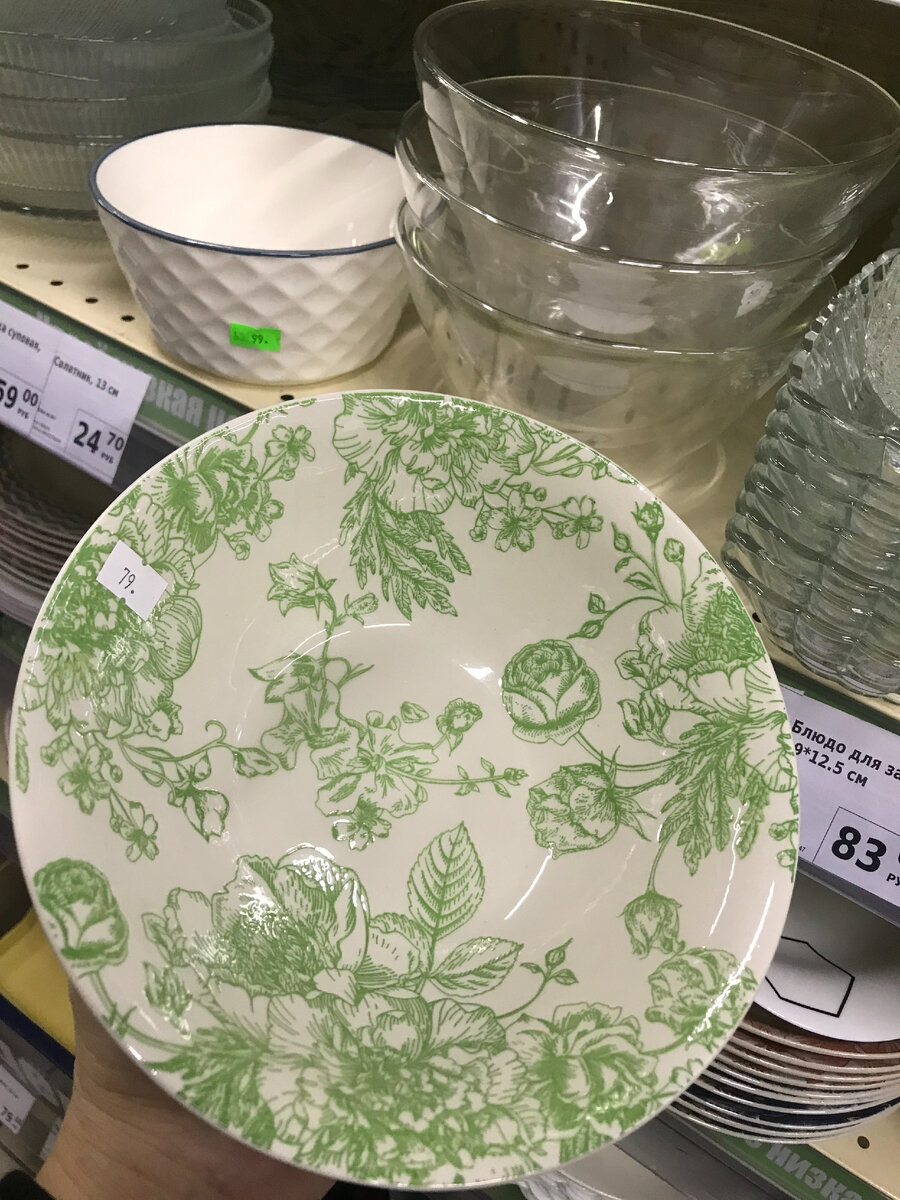 Добрый вечер дорогие друзья! Приближается "8 Марта" - женский праздник! Красивая посуда, кухонная утварь, цветы, конфеты...станут прекрасным подарком для любого возраста. Каждая хозяюшка в этот день накрывает красивый праздничный стол- красивые салфетки, фужеры, оригинальные вазочки... Главный праздник весны-время подарков и цветов. Давайте вместе рассмотрим ассортимент посуды Мне очень понравилась глубокая тарелка с зеленым цветочным узором ЦЕНА 79 РУБ В приоритете конечно же будет зеленый цвет- трава, листья... Кружка, 340 мл Изготовлена из фарфора Ах, какая красотка! Кружка,480мл Изготовлена из фарфора. Цена 99 руб ТЕРМОКРУЖКА,330мл Состав: боросиликатное стекло. Цена 249 руб Популярная посуда Фикс прайса-яркий акцент на столе. Любая хозяюшка будет рада такому мини- подарку Тарелочка с цветочным узором создаст праздничное настроение! Цена 199 руб Ее можно использовать как для горячих, так и для холодных блюд Кружка, 430 мл Состав: фарфор. Цена 116 руб Нашла на полочке неплохие сал