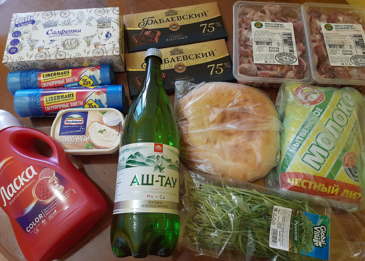Закупка была в виде доставки от Пятерочки. У меня сейчас подключен их сервис Пакет за 1р на 2 месяца. И там 5 бесплатных доставок в месяц, да еще и со скидкой 10%. Так что я иногда заказываю. Знаете, удобно, когда некогда сбегать в магазин. А привозят очень быстро, за минут 20! Но у нас город небольшой))) - Плавленый сыр Хохланд 200г за 134.99р. Я чаще беру этот, так как по вкусу он мне нравится. Состав у него не очень из-за множества добавок, но для разнообразия можно брать. Состав: сыры (какие? Из чего?), масло сливочное (какой жирности?), молоко сухое обезжиренное, концентрат молочного белка, эмульгаторы (Е331, Е339, Е450, Е452), регулятор кислотности лимонная кислота, соль, консервант низин, вода питьевая. В принципе, состав кажется неплохим. Но! Так как мы не знаем состав составляющих-полуфабрикатов (тот же сыр), то я этот продукт отношу к условно-съедобным. Белок 9.8г, жир 25.8г. Изготовитель ООО Хохланд Руссланд, Московская область, г.о. Раменский. - Минеральная вода Аш-Тау 1.5л