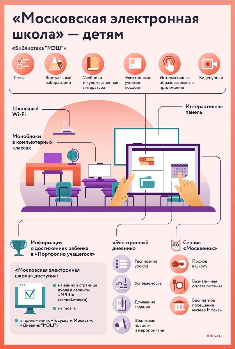 "Московская электронная школа" является цифровой образовательной платформой для учеников, учителей и родителей, созданным при поддержке столичных Департамента образования и науки и Департамента информационных технологий.