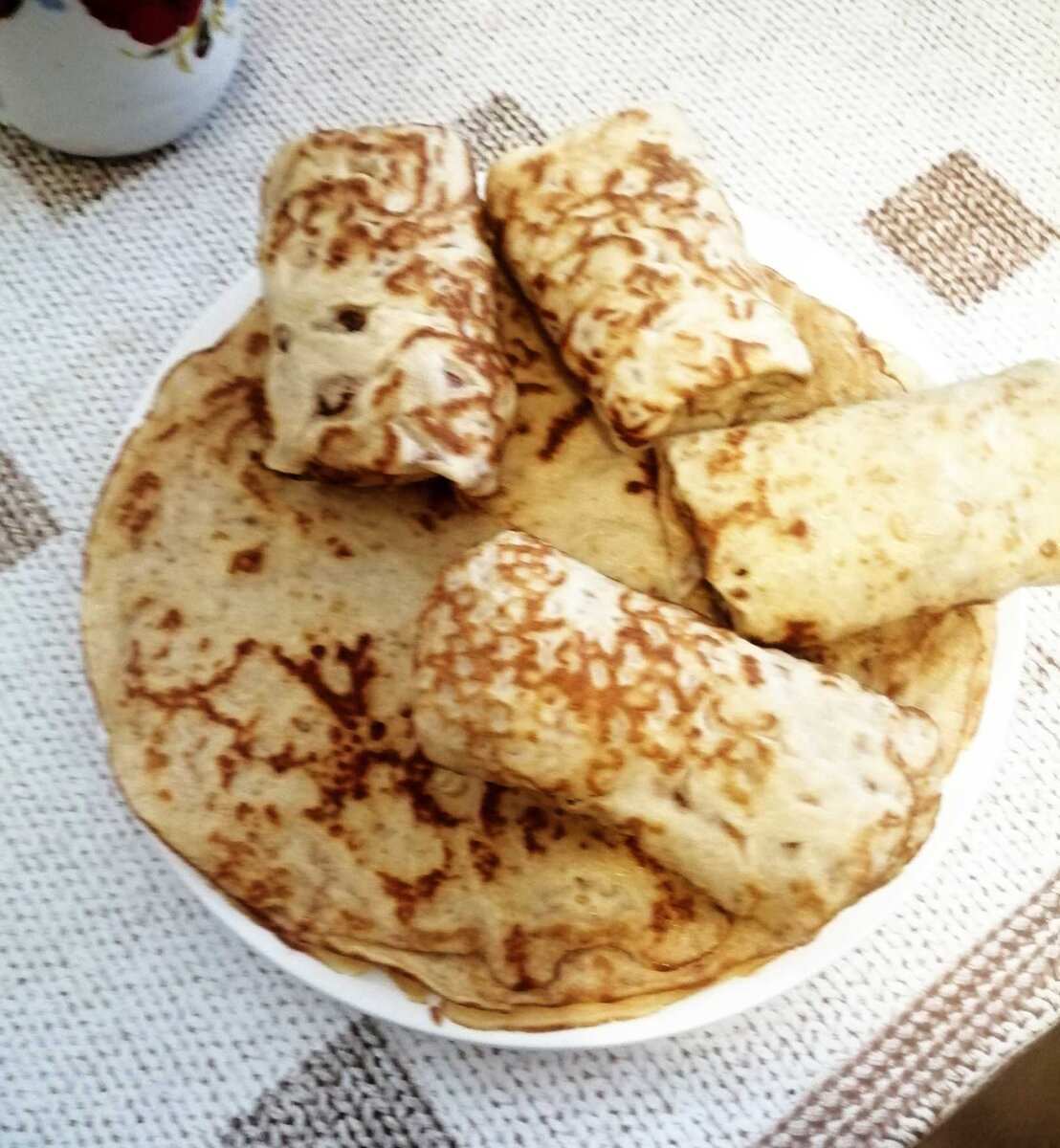 Вот мой рецепт очень вкусных, блинов. Блины очень эластичные, хорошо подходят для фарширования. К тому же, в них нет муки. Тесто: ✓ Яйца — 4 шт.; ✓ Молоко — 100 мл; ✓ Арахисовая или другая ореховаяпаста без сахара — 100 г; ✓ Сливочноемасло (растопленное) — 40 г; ✓ Разрыхлитель — 10 г; ✓ Яблочныйуксус — 1-2 ч. л.; ✓ Сахарозаменитель - по вкусу. Все ингредиенты смешиваем миксером. Выпекаем блины на хорошо разогретой сковороде. У меня сковорода 21 см. Получилось 9 блинов. Начинка — любая. У меня капуста с фаршем. Фарш припустила с мелко нарезанным луком и чёрным молотый перцем. Немного присолила. Капусту хорошо обмяла , присолила и обжарила. Всё хорошо перемешать, и нафаршировать блины. КБЖУ фаршированных блинов (на 100 г) — 197/11,1/12,5/3,9. + 2 фото От наших друзей: Евгений Маргулис, рок-музыкант, на Радио Медиаметрикс Больше общения и рецептов - в группе "Рецепты для диабетиков" в ВКонтакте! Рецепт на странице Автор рецепта – Татьяна Симакова © Почтенный возраст Online и Рецепты для д