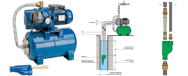 Для летнего использования установка поверхностного насоса проста и быстра. Нужно откачать воду, установить оборудование рядом с источником, опустить в него шланг, заполнить водой корпус насоса и подключить его к сети. Основным преимуществом поверхностных насосов является возможность их непрерывной работы без особого контроля. При непрерывной работе можно легко удовлетворить потребности средней семьи.
