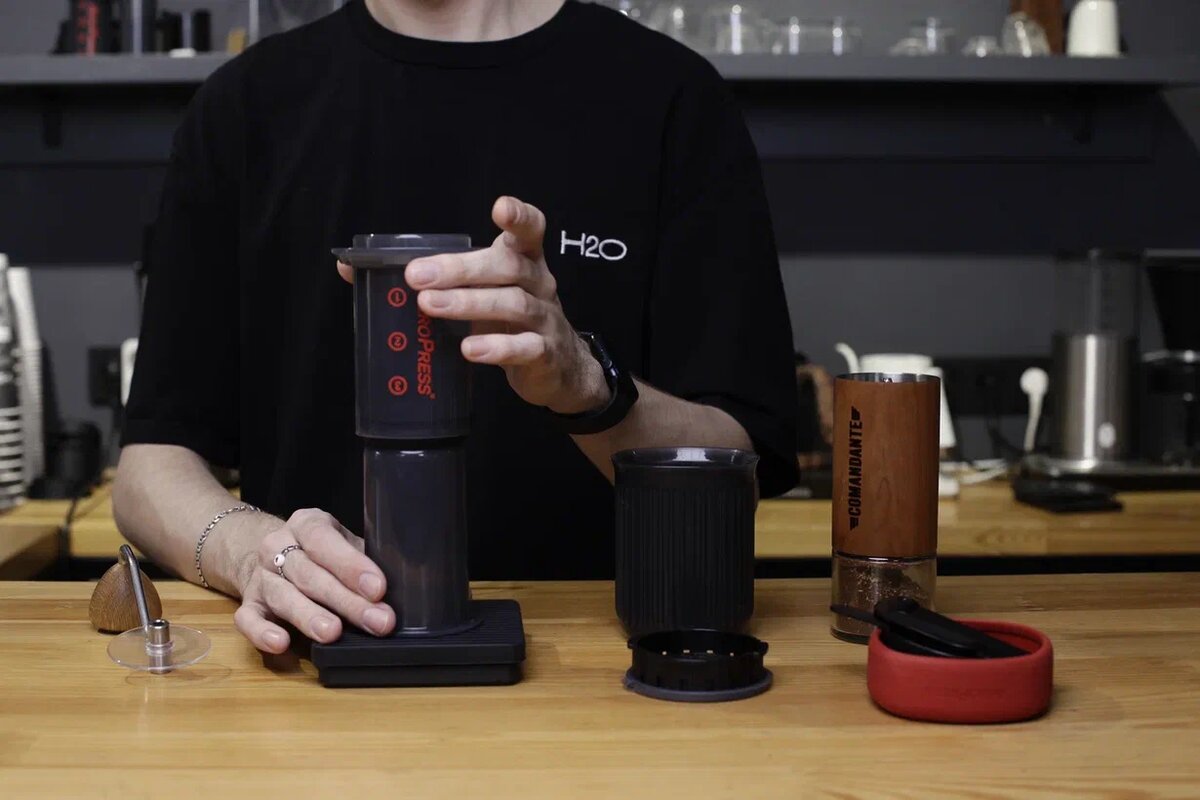 Аэропресс - это метод заваривания кофе без использования кофемашины, который можно использовать дома. Он быстрый, простой и позволяет получить вкусный напиток, который по своим характеристикам напоминает кофе из кофейни. Кроме того, аэропресс удобен для путешествий, так как он компактный и легко помещается в чемодан или рюкзак. Мы подготовили полное руководство по его использованию и собрали несколько рецептов - от классических до оригинальных. Для приготовления кофе нам понадобятся: Какие кофейные зёрна лучше всего подходят для использования в аэропрессе? В целом выбор зёрен зависит от личных предпочтений, но если вы хотите придерживаться классического варианта, то стоит выбрать зёрна светлой обжарки из Кении, Эфиопии, Колумбии, Индонезии, Гватемалы или Новой Гвинеи. Эти зёрна обладают более кислотным и ярким вкусом, а напиток из них получается лёгким, но насыщенным, с фруктово-ягодными оттенками. Степень помола Идеальный помол для аэропресса - средний, немного мельче, чем для капел