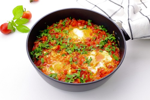 Подавать шакшуку со свежим хлебом или питой. Приятного аппетита.