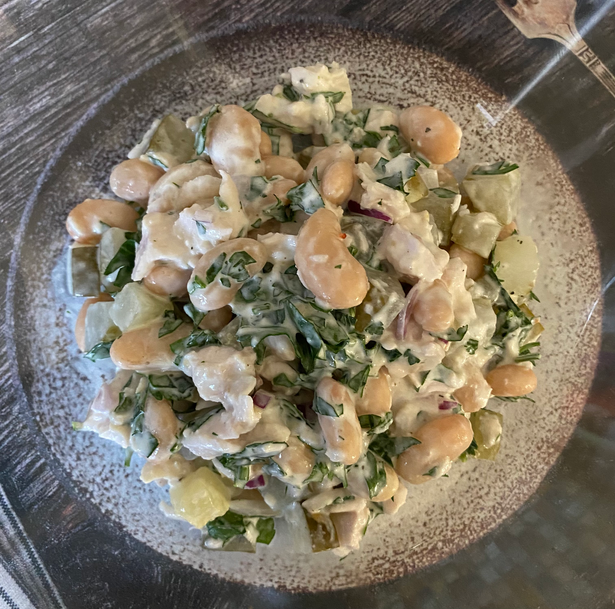 - 1 банка консервированной НАТУРАЛЬНОЙ белой фасоли;