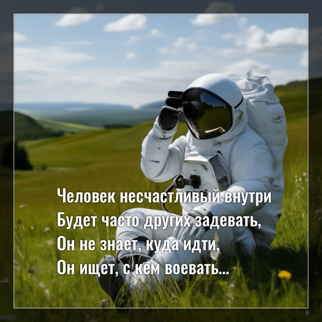 Человек несчастливый внутри Будет часто других задевать, Он не знает, куда идти, Он ищет, с кем воевать, Виноватых всегда найдет И жизни будет учить, Как жаль, что он сам не понял, Как счастливо можно жить. Как обычно, когда внутри Нет никакой опоры, Человек на жизнь смотрит других, На глаза надевает шоры. Тупиковый подход и сложный, Несчастье внутри растёт, Продолжает всех критиковать, Осуждать каждый божий полёт. Только время его остановит Или Бог испытание спустит, Чтобы понял уже человек, Только, как Бог хочет, будет. Что у каждого есть программа, Опыт и путь Души, Что нет на Земле судей, Сам только не согреши. Свой подход поменяв к жизни И свой путь проходя ответственно, Протекать будет жизнь гармоничнее И будут другими последствия.
