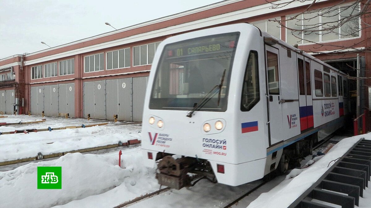 [ Смотреть видео на сайте НТВ ] В московской подземке начал ходить тематический поезд, посвященный выборам президента РФ. Поезд, посвященный выборам президента России, начал курсировать по красной ветке метро Москвы. Запуск состоялся в старейшем столичном электродепо «Северное». Двери в вагоны поезда белого цвета оформлены в цветах триколора. Внутри и снаружи на стенах расположен слоган выборов «Вместе мы сила — голосуем за Россию» и логотип в виде латинской буквы V в цветах российского флага с вертикальными полосами. Справа от буквы — надпись «Выборы президента России 15–17 марта 2024». Также на составе и в его вагонах есть QR-код, который ведет на портал мэра Москвы, где опубликована подробная информация о ходе голосования в столице. Тематический поезд будет курсировать до 17 марта включительно. Президентские выборы пройдут в течение трех дней — с 15 по 17 марта. Жители Москвы смогут отдать голос как онлайн, так и на избирательных участках. Также в этом году снова состоится программа