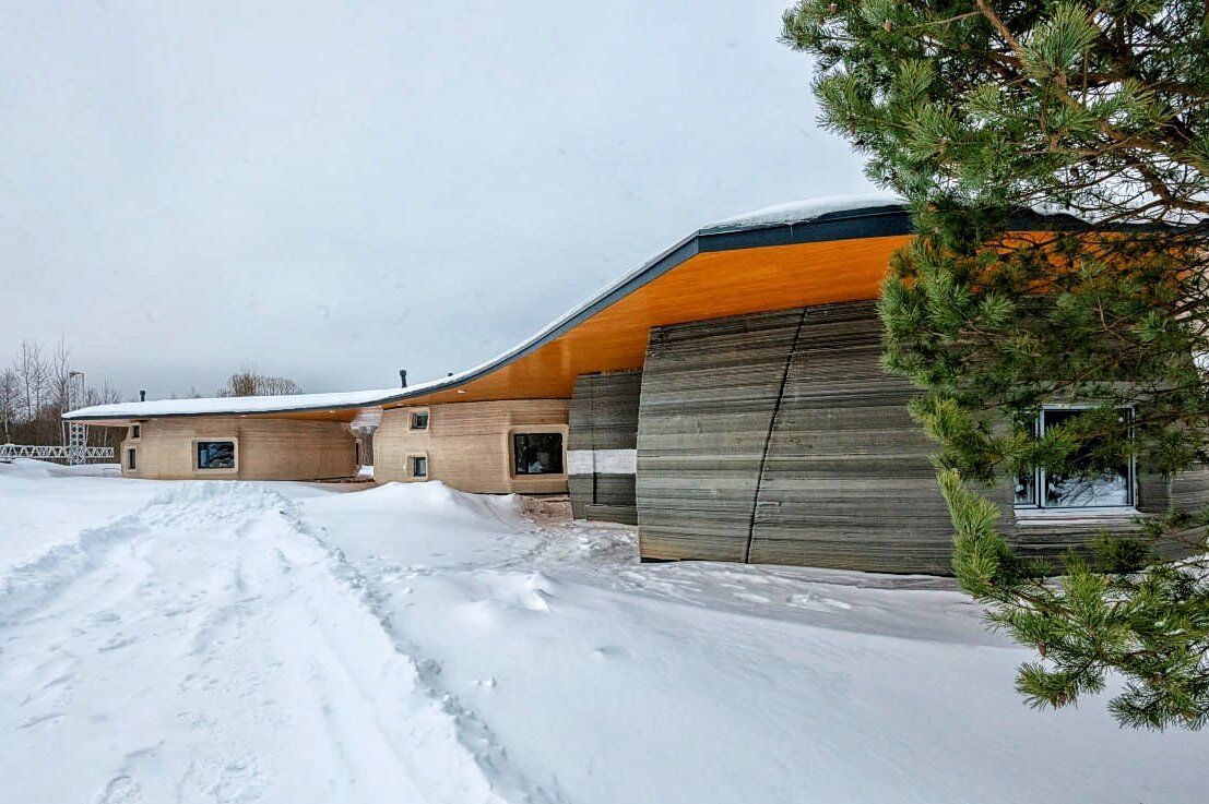 Первый в России 3D-отель встречает гостей в Экопарке «Ясно поле» в Тульской области. Забронировать просторный ВандерДом с двумя спальнями, гостиной и кухней можно на Naturalist.Travel — агрегаторе глэмпингов и эко-отелей России. Каждый дом в «Ясно Поле» — это не просто жилье, а произведение искусства. Новые 3D-дома не отступают от этого принципа. Они имеют мягкую, живую, органичную форму, дополняя и подчеркивая естественный ландшафт экопарка. А дизайнерское решение — не прятать стены за слоем штукатурки, позволив слоистой структуре создавать интересную фактуру — придает отелю уникальный характер. Новые домики не только эстетичны, но и технологичны: на строительной площадке используются последние модели строительных принтеров, а микс бетона, арболита и других мате