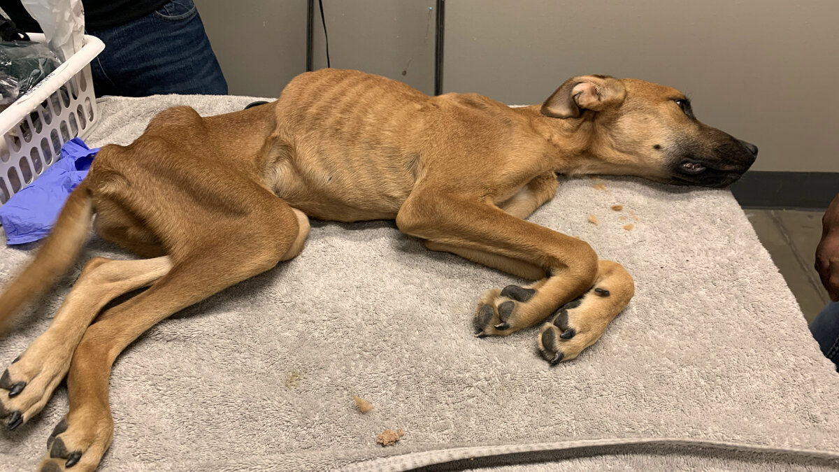 Собака была крупной, но просто невероятно худой, так что все кости наружу. Но куда я её на съёмную квартиру, да и жена беременна