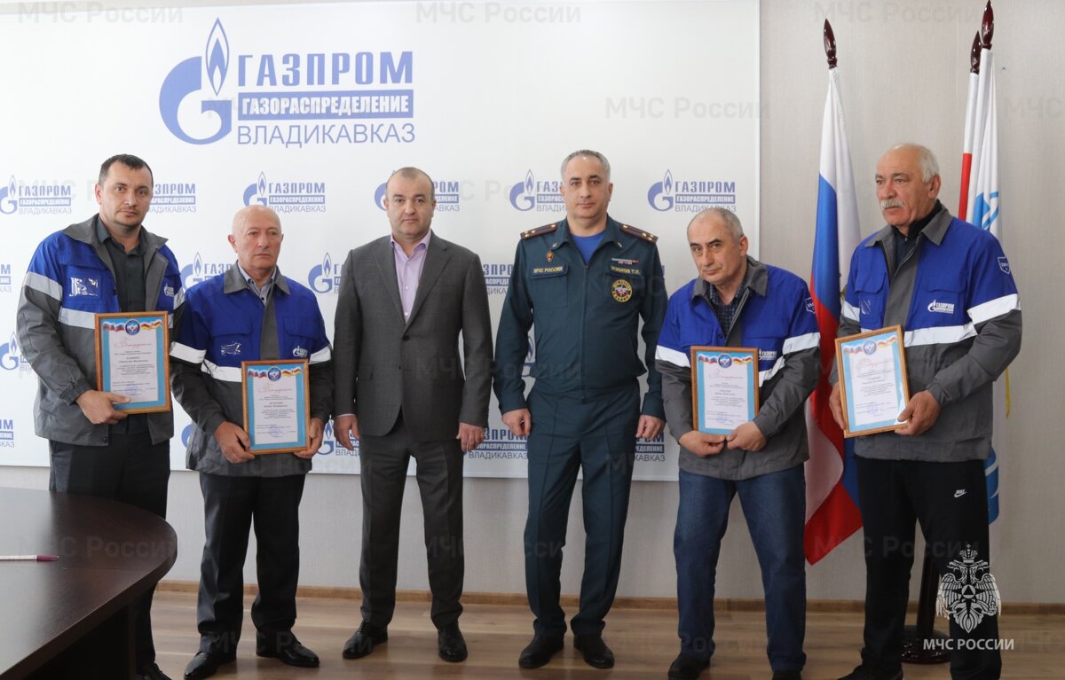 Четверо сотрудников ардонского филиала газораспределительной компании были награждены грамотами благодарственными письмами начальника Главного управления МЧС России по Республике Северная Осетия–Алания Александра Хоружего.Как было отмечено, Рамазан Темиров, Станислав Нафиев, Артур Токаев и Казбек Бетрозов награждены «За активное участие в проведении работ, связанных с тушением ландшафтного пожара на территории Республики Северная Осетия-Алания»Звонок о том, что между населенными пунктами Чикола и Ахсарисар горит сухостой и огонь подходит к газопроводу поступил в газовую компанию от местных жителей.Бригада газовиков незамедлительное выехала на место. Огонь распространялся очень быстро, пламя уже стало захватывать молодые деревья. Сотрудники газовой компании стали тушить огонь, чтобы не допустить возгорания газопровода.Специально, чтобы вручить героям грамоты, на торжественное мероприятие в газораспределение пришли сотрудники МЧС.