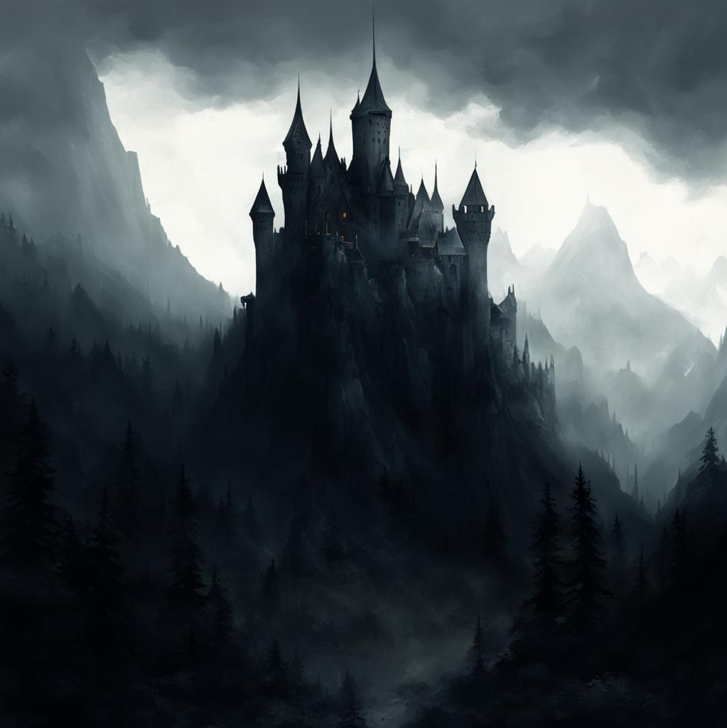 Высунувшийся из окошка, я обомлел. Дорога, сколько я видел вперед, уходила серой полосой в горы, теряясь меж скальными утесами и клочками елового бора. Над всем этим возвышался черный, устремленный ввысь остроконечными башнями, замок. Окутанный дымкой тумана, он походил на огромный трон мифического горного короля.
