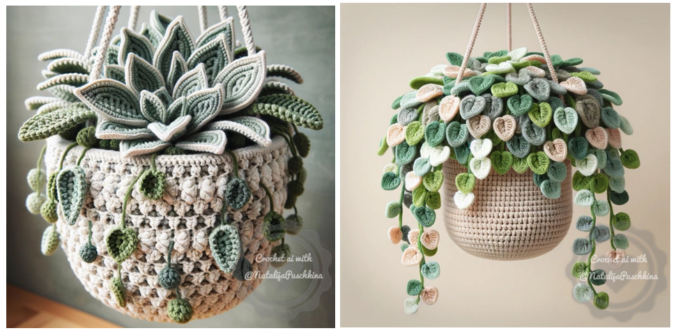 Ищите немного зелени без заморочек с поливом и уходом ?) Если вы очень любите растения, но не очень хорошо получается за ними ухаживать, то у меня и ИИ (искусственный интеллект) есть для Вас решение ) Почему бы не связать свои вечнозелёные растения? Это будет идеальное сочетание рукоделия и садоводства! Создайте собственную коллекцию, связанных крючком растений,которые остаются зелёными круглый год,не требуя полива и солнечных лучей) К тому же- это фантастический способ добавить уютную,индивидуальную нотку в любу. комнату в Вашем доме ! А теперь давайте посмотрим,что сгенерировал ИИ ( фото взяты из нельзяграма со страницы одного из пользователей). А сейчас уже представлю Вашему вниманию свои творения с ИИ : Мне кажется у меня тоже получилось не плохо ))А вы как считаете ? И вообще,вязали что-то подобное или может хотели бы попробовать ?)