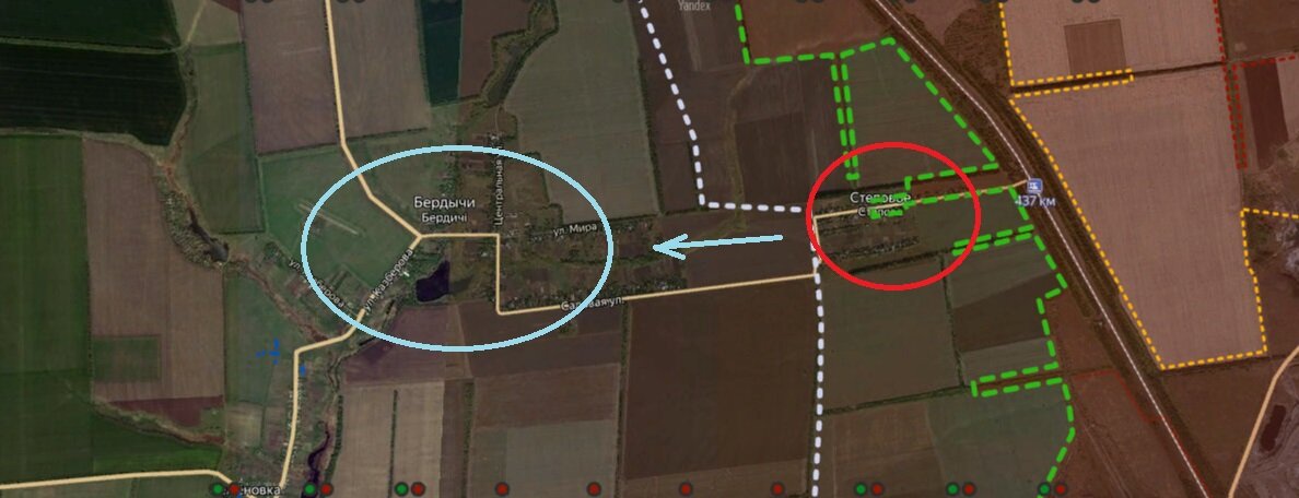 Из-под нашего с вами любимого направления пришла ещё одна радостная весть - наши наконец-то открыли счёт американским "Абрамсам". Буквально час назад пришли первые кадры, а вот сейчас подтверждение того, что в коллекции трофеев у наших парней прибавление. Сейчас расскажем всё подробнее, как и что случилось. После нашего вчерашнего обзора вы должны помнить, что благодаря занятию коксохима у наших появилась отличнейшая возможность контролировать окрестности. Небратья, что поумнее, смекнули это и откатились отсюда в соседнее село (выделен голубым овалом на карте ниже) : Собственно, в этом селе всё и произошло, точнее на его опушке. Пока одни наши парни обживались на новых позициях, другие уже во всю дали "распустить перья своим птицам". Так и попался рано утром один из "Абрамсов" в их зоркий глаз! Вот он на фото ниже: Здесь надо сделать отступление и сказать, что небратья давно хвалились тем, что где-то тут в окрестностях катается "Абрамс" или несколько. Наверное, первые видео были ещё