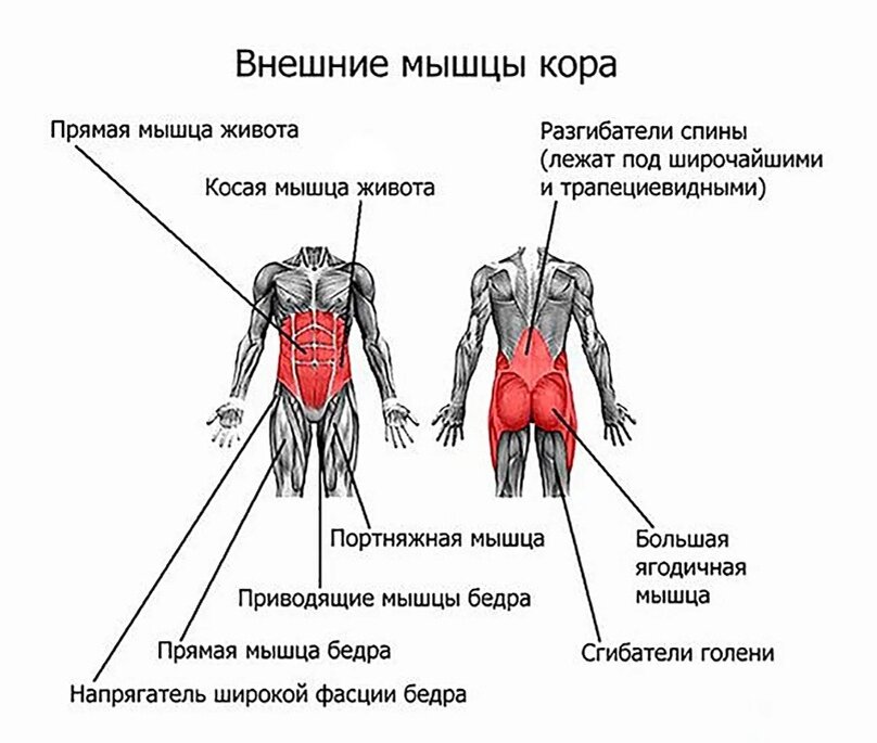 6) участвует в большинстве физических упражнений: приседания, становая тяга или тяга с блоками, жимы, отжимания и т.д.