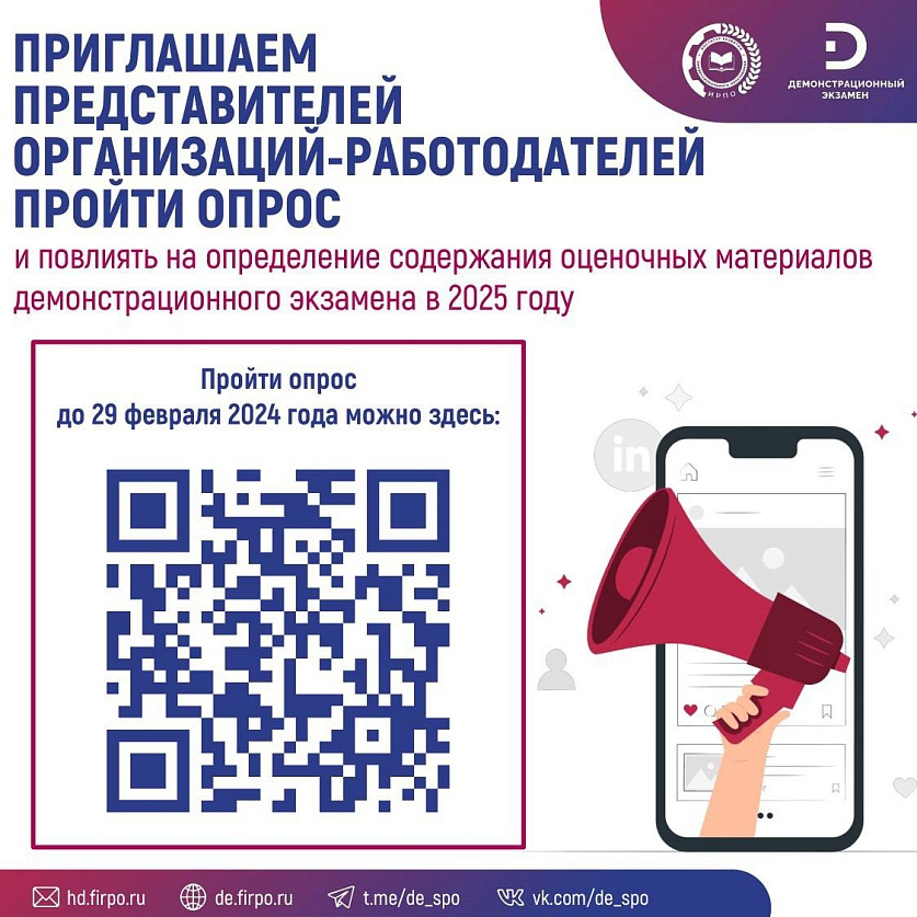 Приглашаем работодателей пройти опрос для определения квалификационных требований в рамках формирования содержания оценочных материалов демонстрационного экзамена.