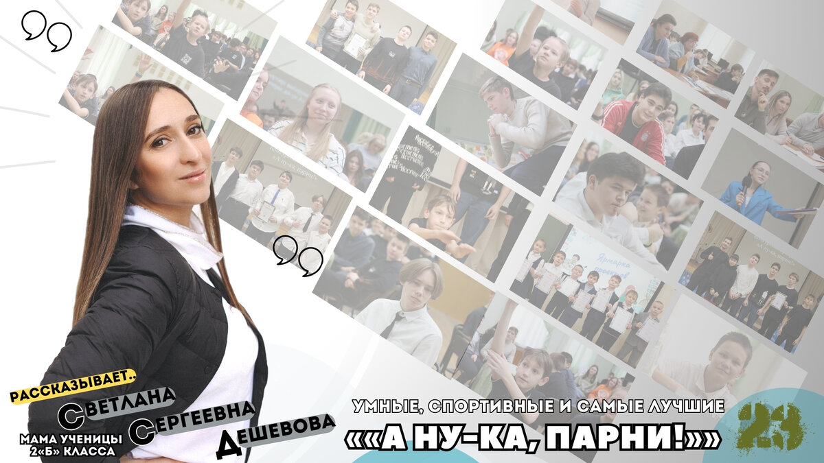 «В честь наступающего Дня защитника Отечества в школе прошел конкурс «А ну-ка, парни!»», — рассказывает ведущая рубрики Светлана Сергеевна.