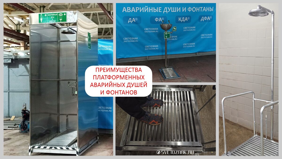 Преимущества аварийных душей и фонтанов с платформенным включением ДА®, ФА®, КДА®, ДФА®