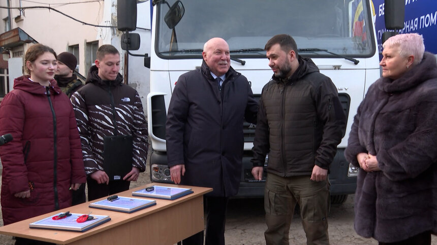 Для учебных заведений были куплены интерактивные проекторы, экраны и другая техника, необходимая для студентов. Фото: 5-tv.ru Госсекретарь Союзного государства Дмитрий Мезенцев посетил Донбасс и привез жителям ДНР и ЛНР гуманитарную помощь. В частности, в Донецкий технологический колледж и Донецкий транспортно-технологический колледж для учебного процесса были переданы грузовики КАМАЗ-43082. Луганский колледж автосервиса имени А. А. Гизая получил два автомобиля МАЗ, для учебных заведений также были куплены интерактивные проекторы, экраны и другая техника, необходимая для студентов. В Донецке Мезенцев встретился с главой ДНР Денисом Пушилиным. «Всегда рад, Дмитрий Федорович, когда приезжаете в республику. Первое, для нас это правильный, хороший сигнал, все-таки Союзное государство. Для нас все очевидно, понятно, ведь самые теплые взаимоотношения у нас с Белоруссией, ну а про Россию — мы Россия, что тут говорить. Ну и, безусловно, приезжаете вы сюда не с пустыми руками», — отметил Пушили