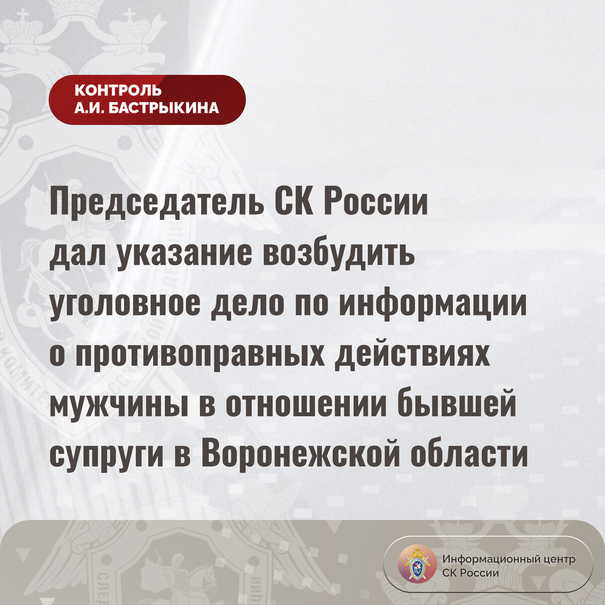 Председатель СК России дал указание возбудить уголовное дело по информации о противоправных действиях мужчины в отношении бывшей супруги в Воронежской области