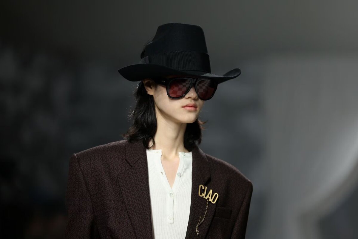Новый креативный директор Адриан Аппиолаза возвращает бренду былую изящность. Классический тренч оливкового цвета украшен жемчугом. А в руке модели красуется пакет с пучками зелени и багетами. Другой образ цепляет взгляд атласной рубашкой с принтом в виде подтяжек. А третий — сочетанием оверсайз-жакета, серо-синего вязаного свитера, платья с облачным принтом и шляпы в виде бумажного кораблика.