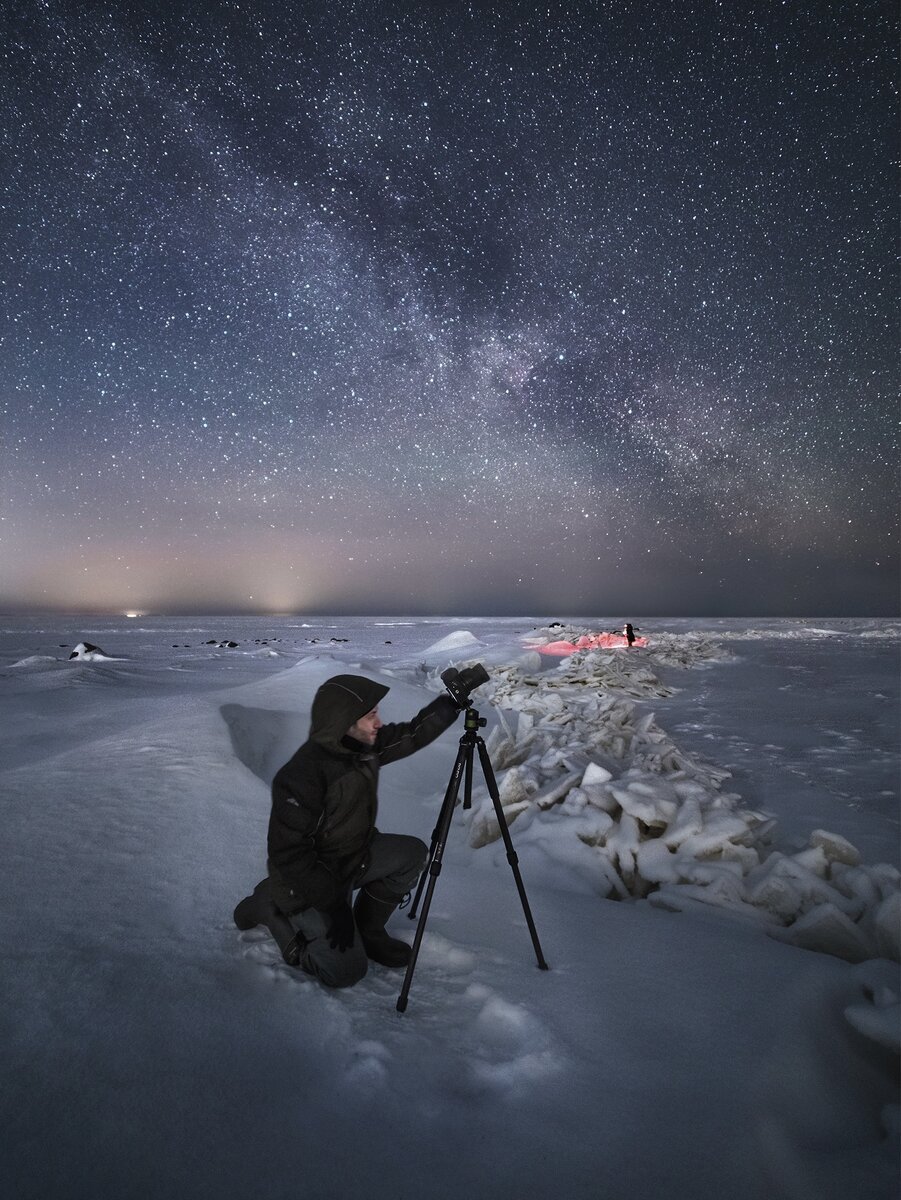 Такие вот они, астропейзажные фотографы - пока на улице тепло, они сидят дома, но как только температура падает до -20, они тут же двигают «в поля». Так уж вышло, что зимой ясное небо чаще всего дают в морозы. Поведаю немного о том, как сделать свои зимние вылазки более комфортными 🥶 Экипируемся следующим образом: 1. Термобелье, зимнее. Для тех, кто не в теме - в составе термобелья не должно быть хлопка. Он задерживает в себе влагу, а нам нужен материал, который влагу будет отводить - это синтетические материалы. Если найдете термо с шерстью мериноса, то будет идеально. 2. Слой одежды с утеплителем. Лучший материал - флис. Лучше потолще. И кофта, и штаны. 3. Куртка и штаны с ветро/влагозащитой, с мембраной и всеми плюшками, которые сможете найти. 4. Перчатки, шарфы, шапки - тут по вкусу. Если ты фотограф, надо функциональные, но тёплые перчатки. Или же две пары: тонкие для работы с техникой, тёплые ветро/влагозащитные поверх тонких. 5. И самое интересное и душещипательное -