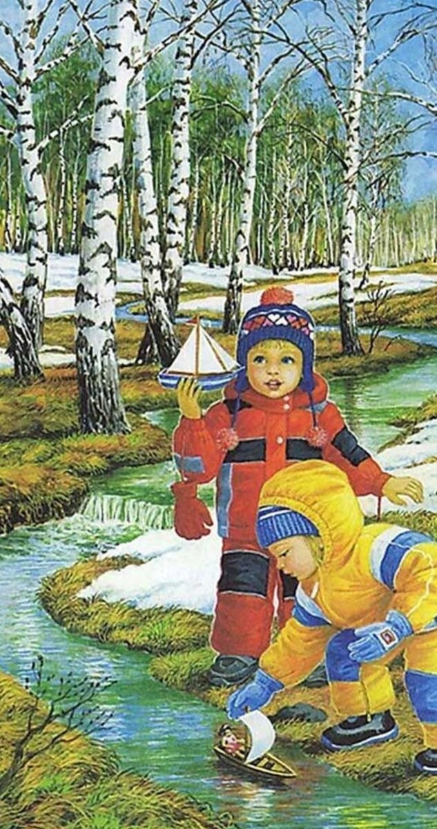 Морозные узоры на стёклах побледнели, Игольчатые звёзды растаяли во мгле, И снега тучи, в стаи собравшись, улетели, Весна прошлась неслышно по скованной земле. То первое дыханье легло на звёзды окон И растопило иней на стёклах расписных, Стекались капли влаги в сосульки нежный локон И разбивались дробью в лужах озорных. А шаловливый ветер по лужам пробегался, Он нёс с собой дыханье проснувшейся весны, Разбрызгивая капли, тот ветер забавлялся: Такие полномочия ему весной даны! И разлетались брызги, как радужные блёстки, И веселились дети, пуская корабли, Весна в ручьях звенела капелью ярко-звёздной, Весна в сердца вливалась, лишь душу распахни...