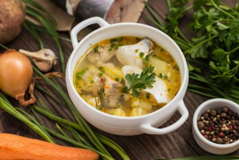 Вот лещик, потроха, вот стерляди кусочек!" Слюнки уже потекли? И не безосновательно, шикарная уха, причем даже к празднику будет хороша. Подавали раньше на Руси множество блюд и одно из многих: рыбные супы. А какая же ушица к празднику кроме царской? Вот ее то мы и съедим. Хотя сначала приготовим... или может вы планируете поход в ресторан? Если сами, то пошли к холодильнику, а оттуда мы достаем: Ингредиенты: Небольшую курицу, лучше домашнюю несушку или петуха, гр 700-800 мелкой рыбешки (ершиков, окуньков, можно головы и плавник