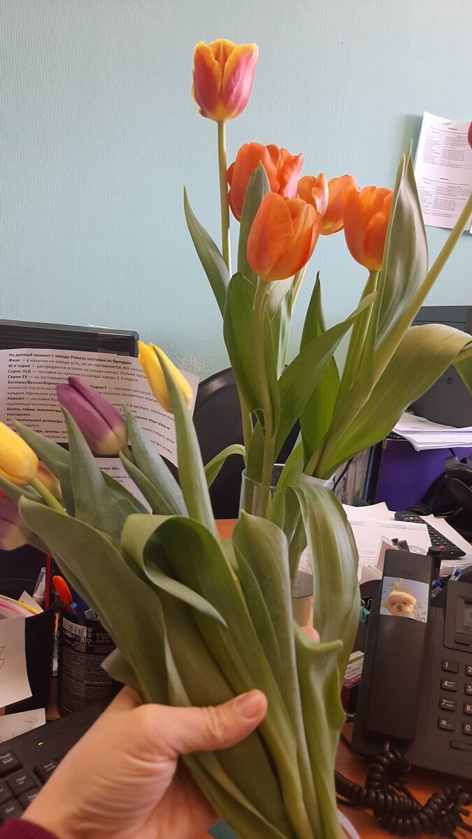 Сегодня на календаре уже 10 марта. В первую очередь, я хотела бы, пусть и с опозданием, поздравить всех дам с праздником! Делаю вам от всего сердца тепла близких, взаимопонимания, свершения больших и маленьких планов, отсутствия тревог. Пусть вас радуют ваши половинки поцелуями, неожиданными приятными сюрпризами и просто вниманием! Я же, помимо поздравлений, хотела рассказать о подарках. На самом деле, я не считаю 8 марта каким то великим праздником требующим больших и дорогостоящих подарков. Намного больше ценю внимание к мелочам: пусть будут любимые конфеты , красивая открытка с тёплыми словами, проведённое вместе время, или наоборот возможность уделить время чему то такому, на что обычно времени не хватало))) У моих детей очень большая разница в возрасте. Я успела позабыть, как радуют, бумажные цветы сделанные руками ребёнка. Как внимательно сын следит за моей реакцией на врученные мне букет бумажных тюльпанов. Как? Понравились? Я старался! Супруг конечно показал личный пример! Цв
