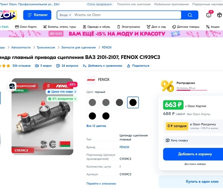 Более 20 лет принебрегал запчастями производителя Fenox из-за плохой репутации. Сейчас на пробеге 34000 км (5 лет эксплуатации) потёк гл. цил. сцепления. Стал искать, что-то по приемлемой цене и качеству. Fenox C1939C3 (2101-1602610) оказался самый дешёвый (на Озон стоит 663 р.). Производитель обещает высокое качество и технологичное изготовление При разбоке нового цилиндра обещания подтвердились. 1. Есть двойное хонингование поверхности (фото не получилось) 2. Манжета с двойной кромкой Цилиндр смазан и снутри и снаружи Есть и неприятные моменты: 1. Внутри цилиндра мелкая алюминиевая стружка, а под пыльником, куда уперается шток педали - грязь. 2. На корпусе цилиндра нет никаких обозначений. Цилиндр установлен 14.03.2024. Если ниже ни чего не написал значит он всё ещё работает исправно.