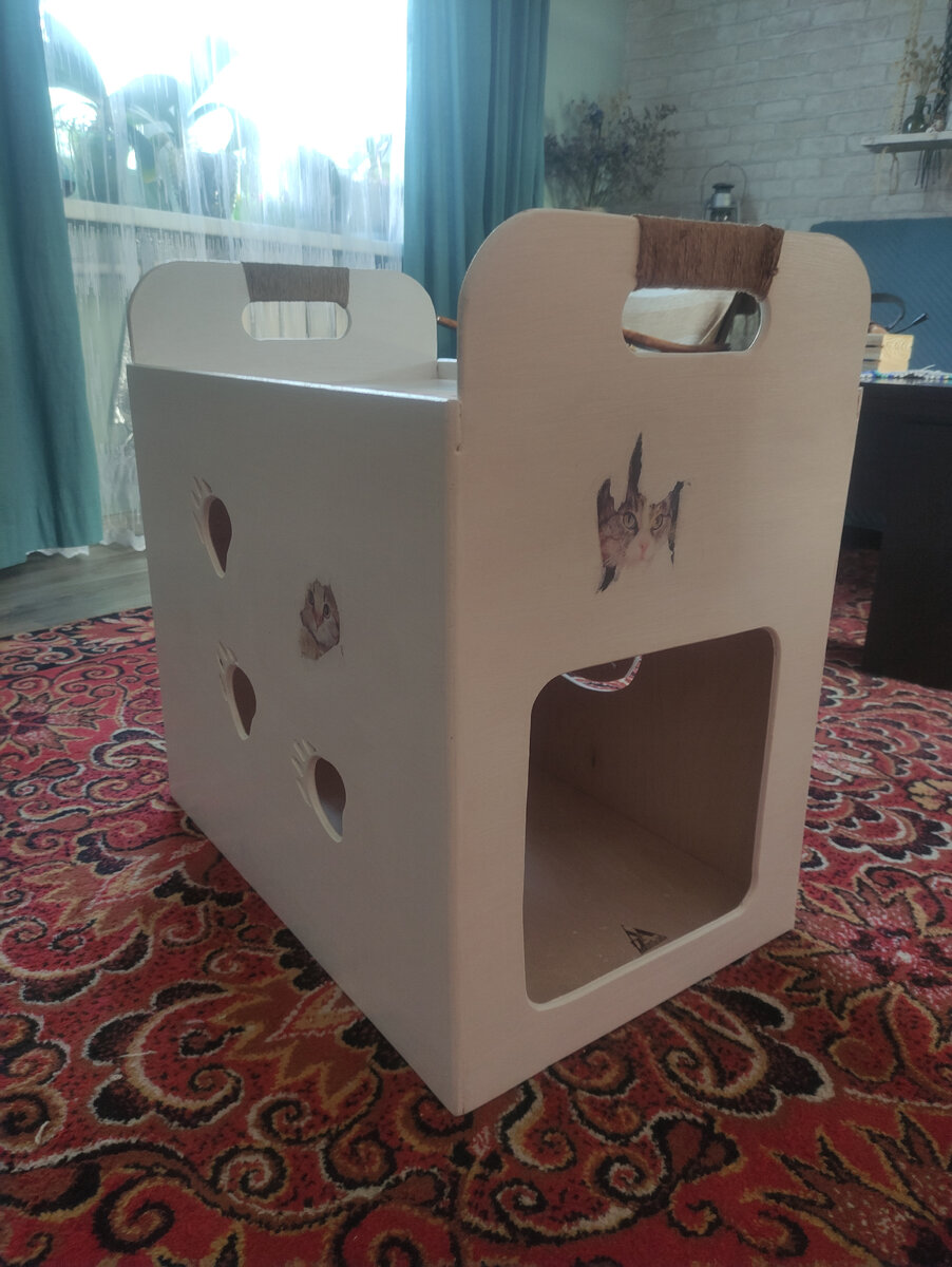 Здравствуйте дорогие друзья и гости моего канала ! Около года назад, у моей дочери появился питомец , маленький рыжий хвостик. Попросила она папу сделать домик для своего рыжика . Дала размеры, объяснила, что примерно хочет. По её размерам получился целый вольер для кота.)) Папа для дочки, конечно постарался. Нашим хвостикам домик тоже понравился)) Дочь немного доработала идею. Приклеила когтеточку и положила сверху матрасик. А это дочкин питомец, уже облюбовал свой дом.)) Вслед за этой публикацией добавлю ролик, который сделала моя Маша. Голос изменила, немного смешно получилось. Это она так решила прорекламировать папин продукт.)) Спасибо всем за внимание !!! Мира, добра и благополучия !!!