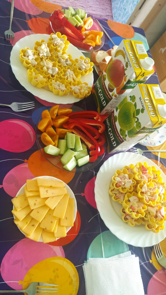 Сегодня моей старшей 9 лет. И сегодня первый раз ждали гостей на день рождения . Обычно дома и по семейному , а тут дочь позвала. Два салата в тарталетках( дети их есть не стали), сыр с орехами, овощи нарезка, ещё было мясо и картошка по деревенски. И торт куда ж без него. Стоил дорого и не вкусный. Дети подарили деньги в конверте,я прям удивилась. Бесились, играли, смотрели мультики. Ещё на улицу ходили. Там оказывается была масленица, я уже ничему здесь не удивлюсь. Вроде так как в следующие выходные выборы и чтоб не мешать провели масленицу сегодня. Честно выглядит как бред. Ещё один момент испортил настроение.Некоторые дети не пришли. Возможно,как раз из-за этой масленицы. Обидно мы столько готовились шарики покупали,пиньятту готовила , игры купили.Ну и дочь не много расстроилась . Сказала что не так всё представляла, эх вот они первые разочарования ... Но ещё не вечер! Ещё не подарили всех подарков ну и пиньятту ещё нужно будет разбить. Подарки и подсчёты по затратам на стол напи