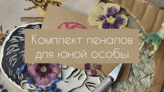 В один прекрасный сентябрьский день ко мне обратился заказчик с просьбой создать подарок для его дочери на день рождения. Эта маленькая девочка учится в третьем классе, и поэтому мы решили сделать для неё набор пеналов: один для ручек и карандашей и второй для хранения других мелочей. Для внешнего материала я выбрала натуральный лён, который не окрашен. Внутри пенала находится подкладка из хлопковой ткани. Оба пенала закрываются на молнию. Я начала работу с внешнего слоя. Хочу предупредить, что эскизы для штампов не мои, и я не претендую на авторство. Если вам интересно, я могу ответить на ваши вопросы в комментариях. Клубнички состоят из двух слоёв, а цветок — из трёх. Мне захотелось, чтобы рисунок на шве снизу совпадал и переходил из одной половины пенала в другую. Позже я поняла, что можно было сделать это одним куском, но на тот момент я ещё не имела опыта в пошиве пеналов и решила следовать инструкциям из интернета. Затем настал черёд пчёл. Их штампы состояли из двух частей: фонов